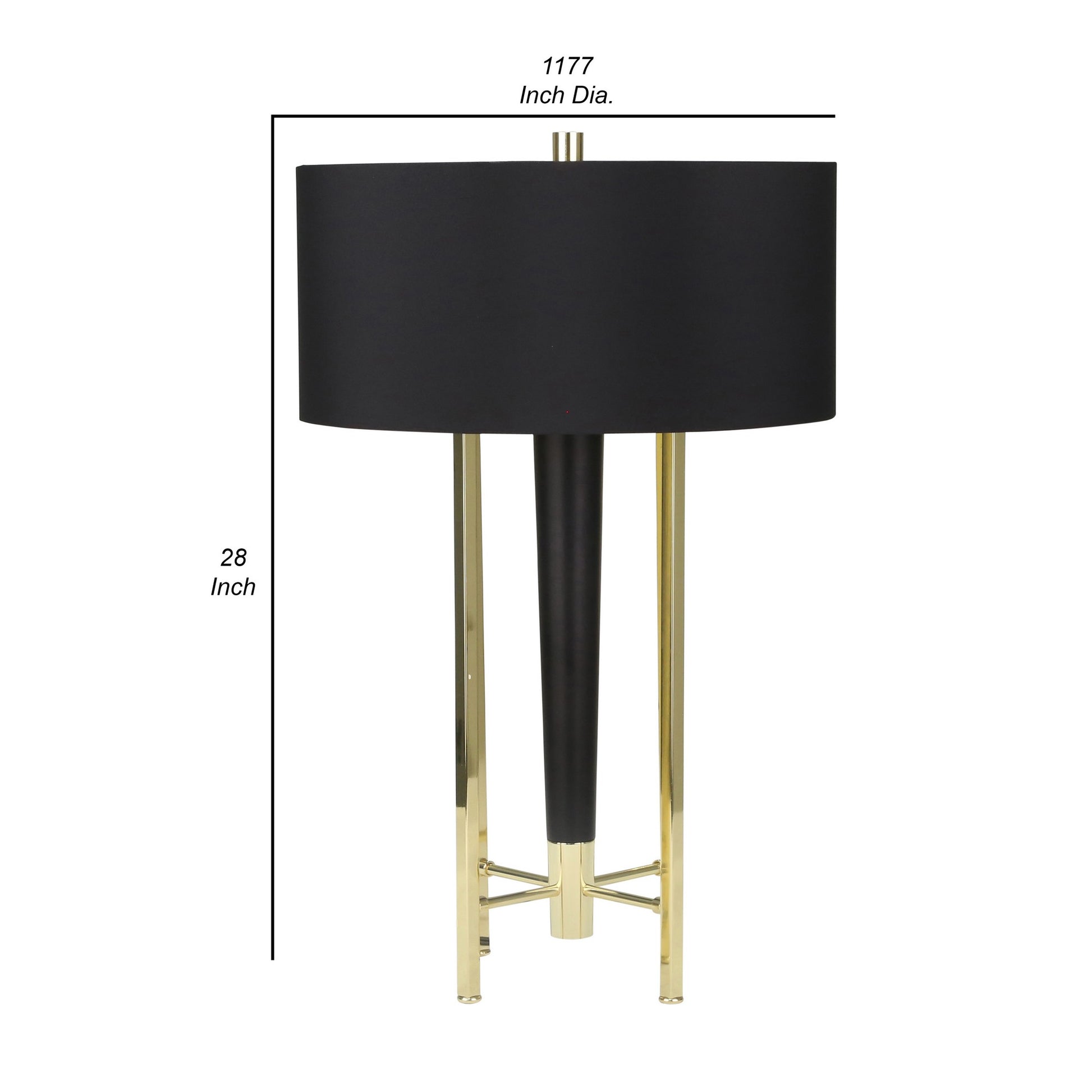 28 Inch Contemporary Metal Table Lamp with Four Accented Legs Black Gold