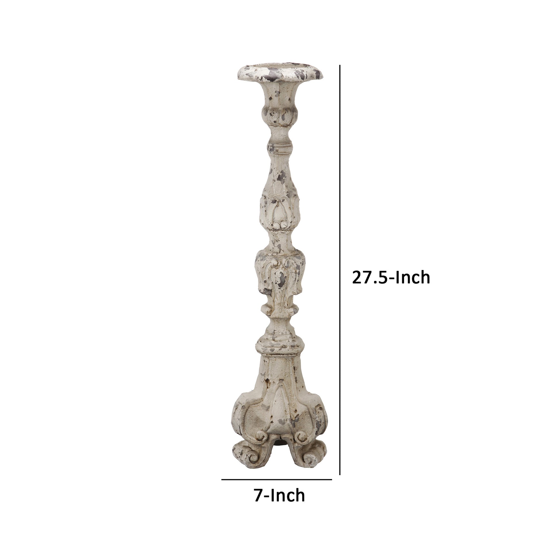 28 Inch Metal Candle Holder Classical Turned Pedestal Distressed White