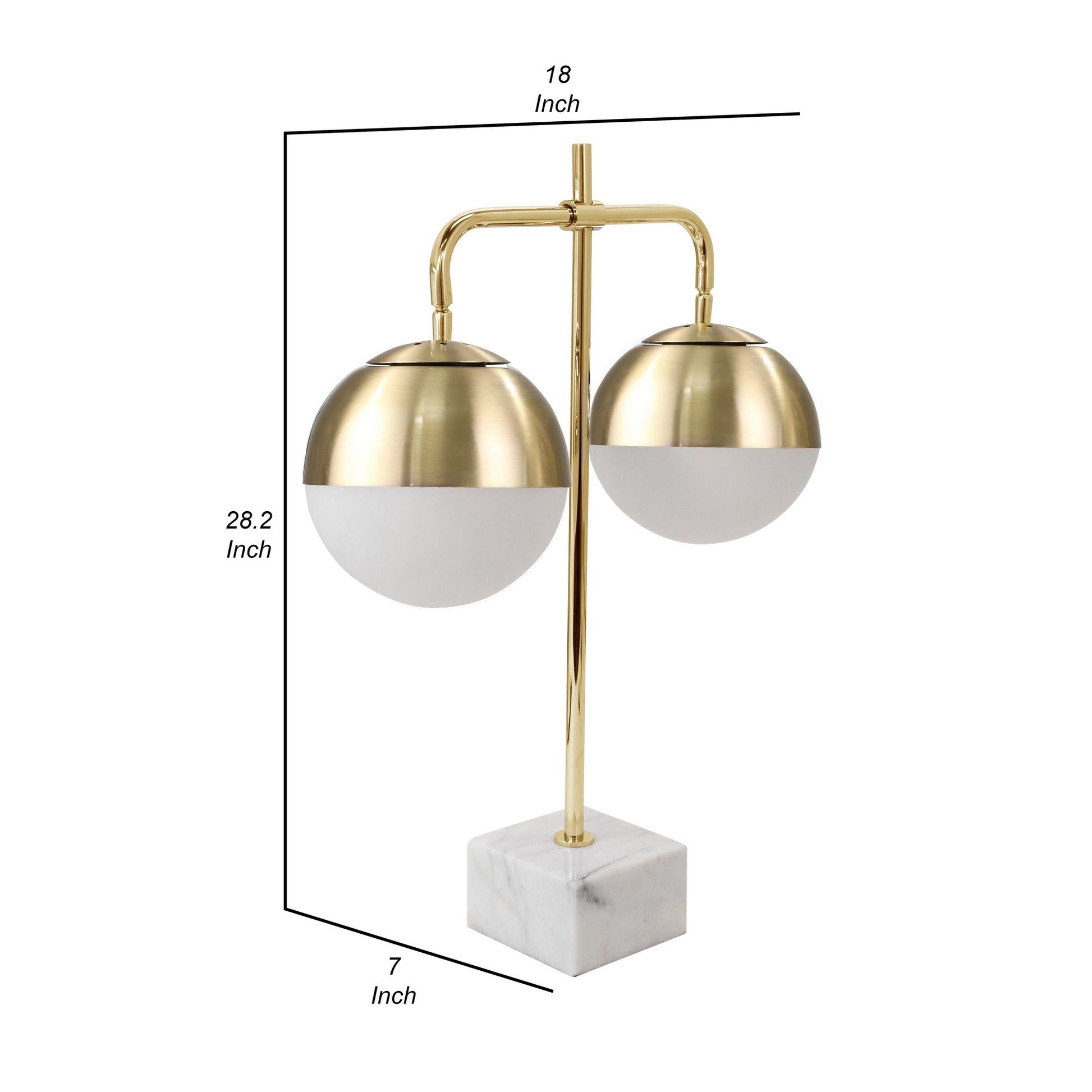 28 Inch Modern Metal Table Lamp Dual Orbs Marble Pedestal White Gold