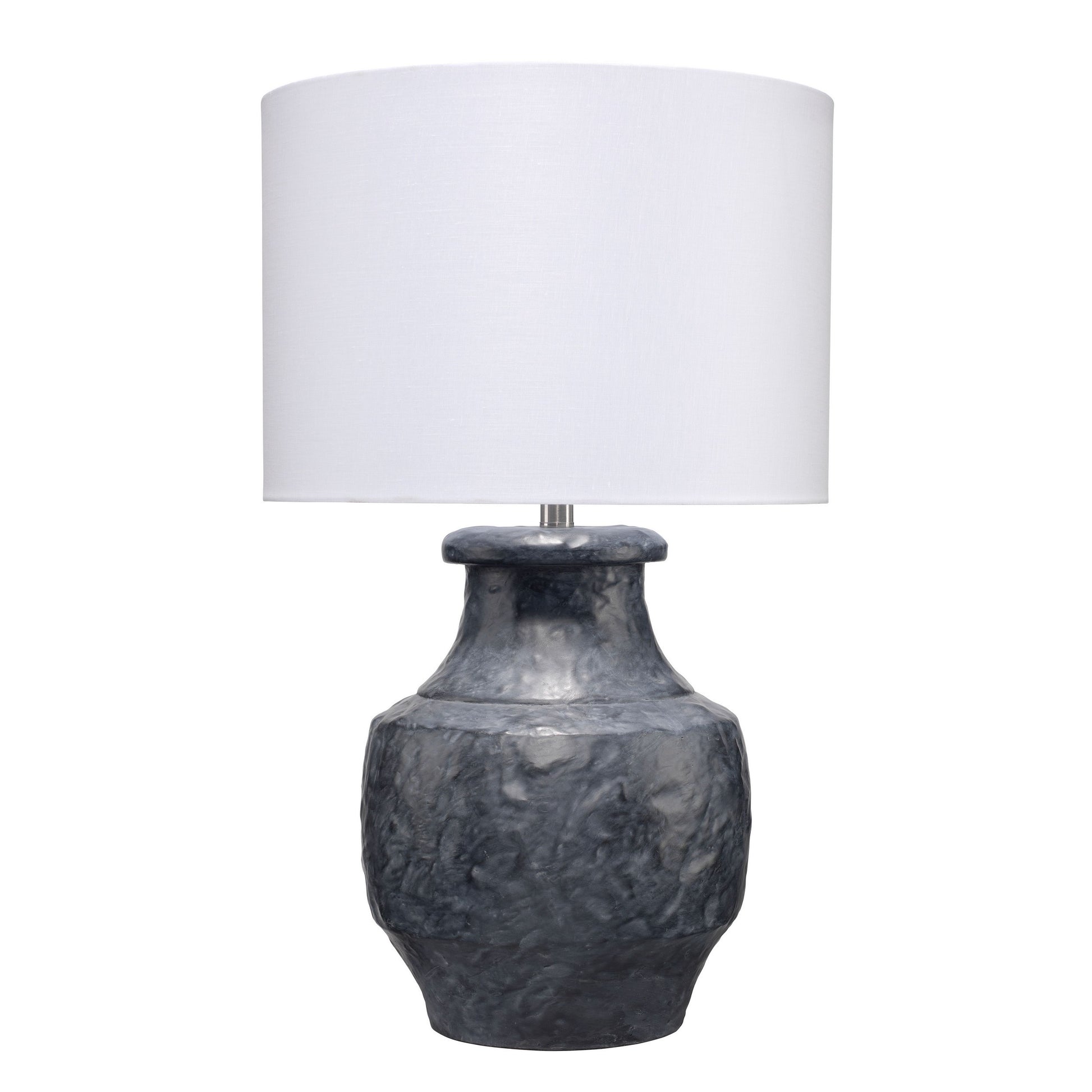 28 Inch Modern Table Lamp Handcrafted Polyresin Urn Linen Shade Gray