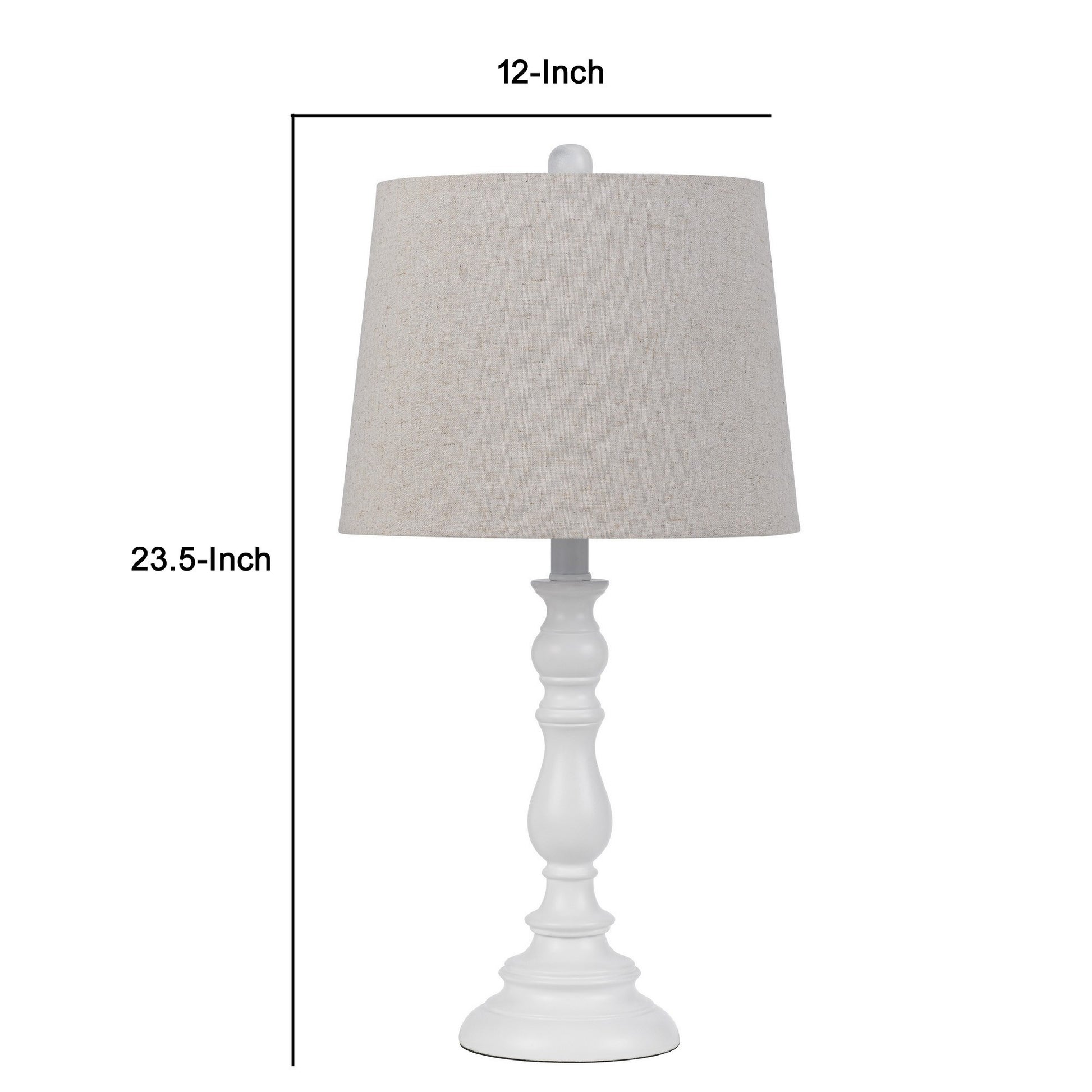 Infuse your home with a deeply welcoming aura by bringing home this gorgeous white table lamp, available in a set of two. Made with sturdy resin frames, this set features hardback tapered shades made of beige fabric to provide a warm, soothing glow while the finial accents above the traditionally designed and turned body give it an undeniably artisanal vibe, perfect for any modern home.