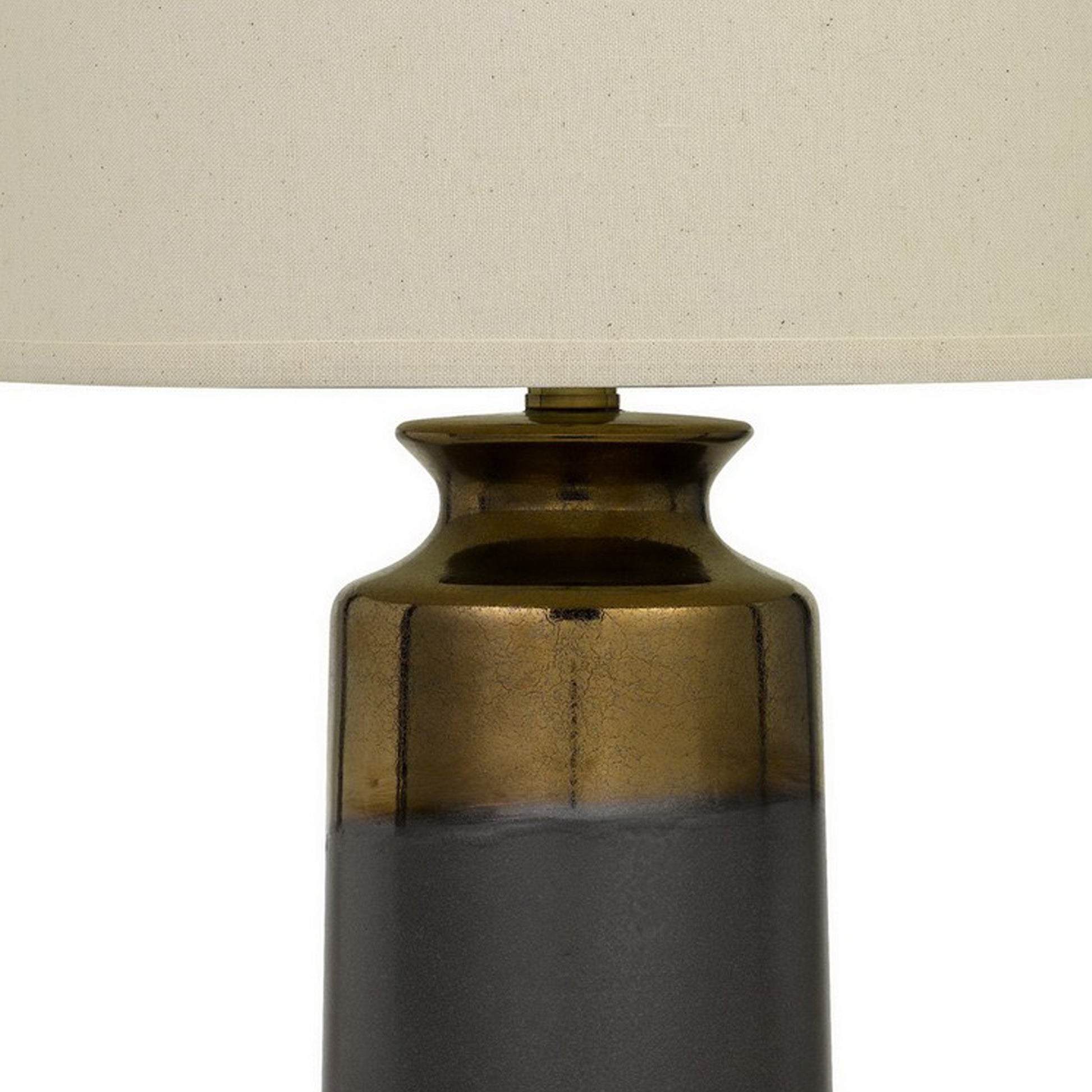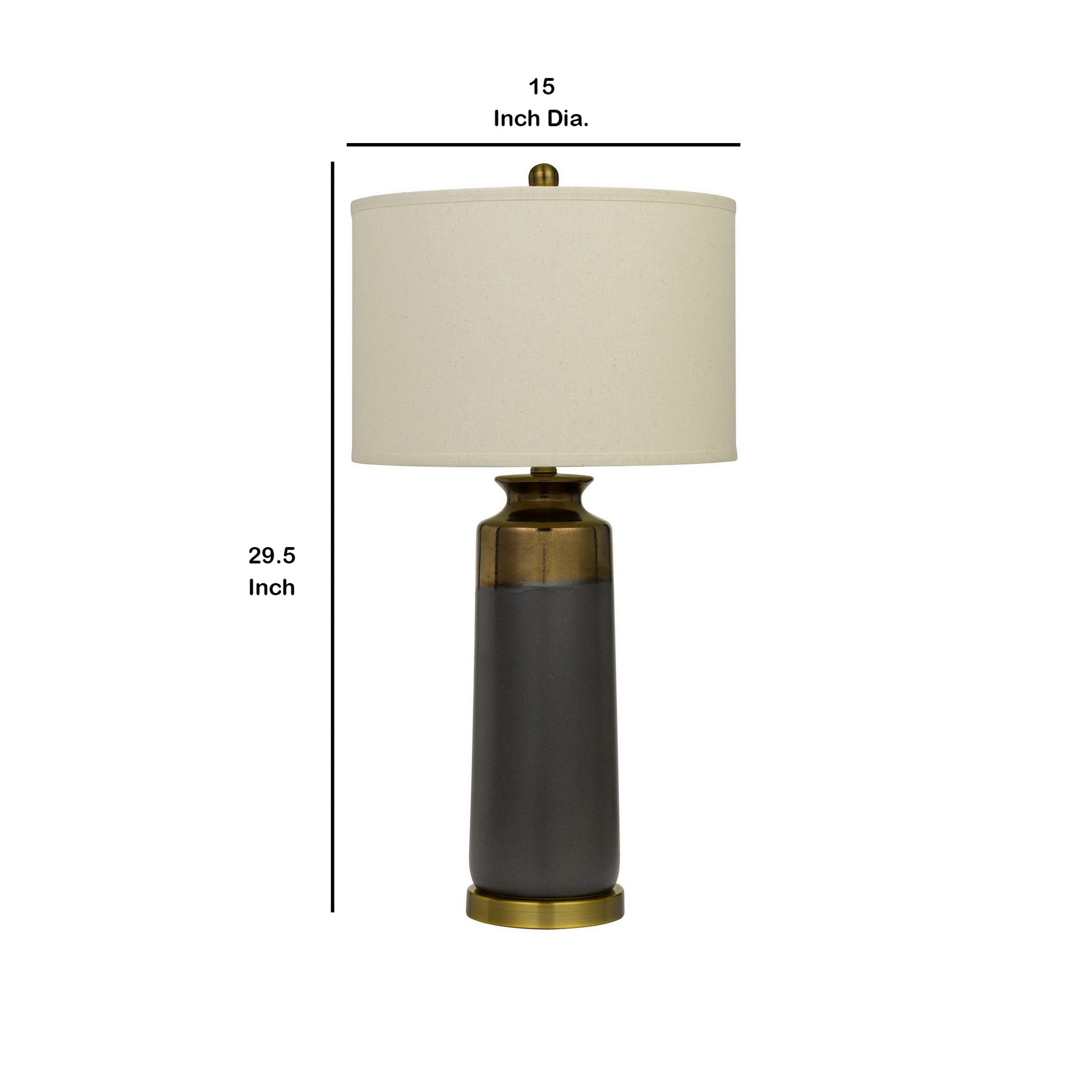 Illuminate your home with the lights of prosperity by bringing in this captivating 29.5 inch table lamp. Featuring a ceramic body in a gray and gold finish, it is incorporated with a round white fabric shade that uses 150W type A bulb for providing proper lighting.