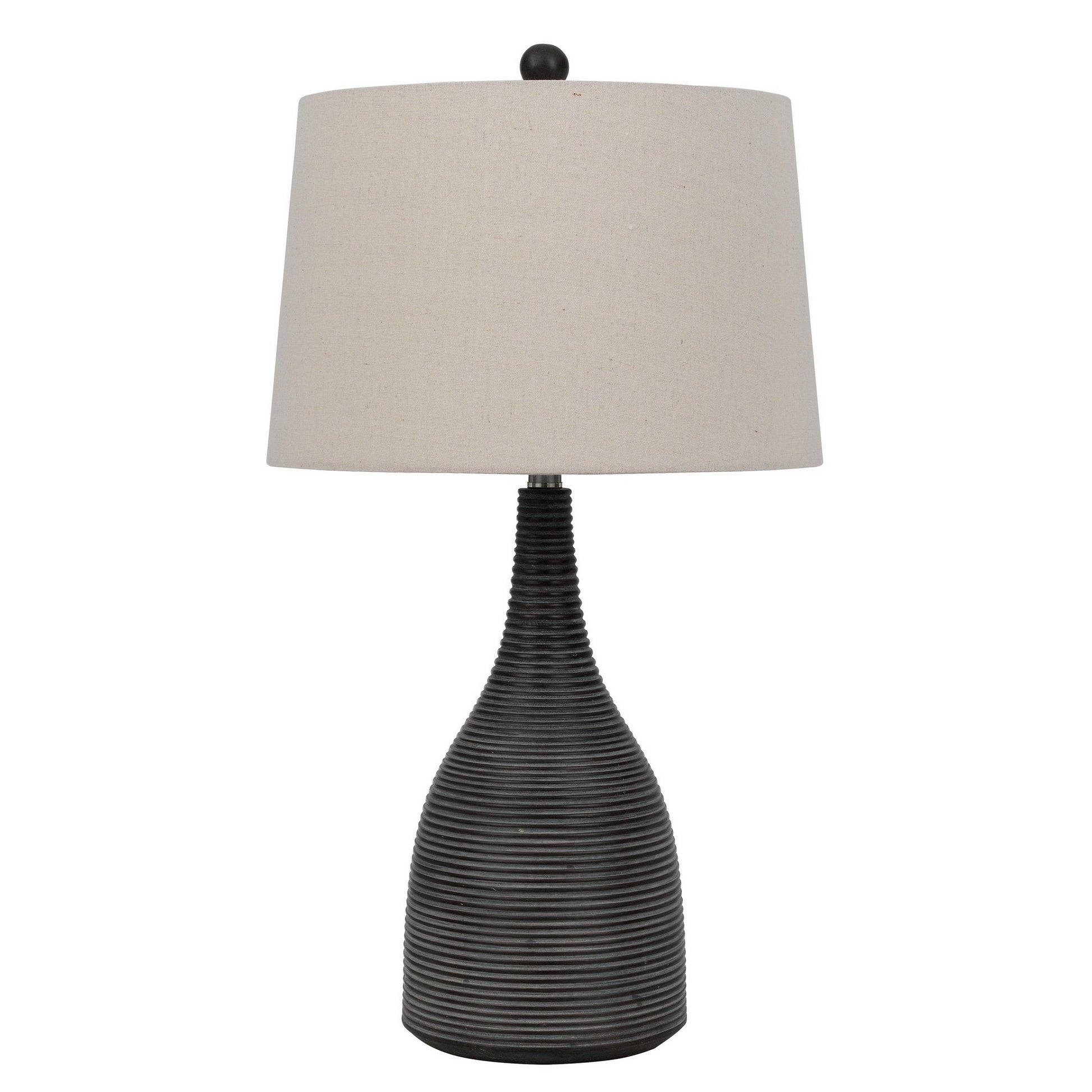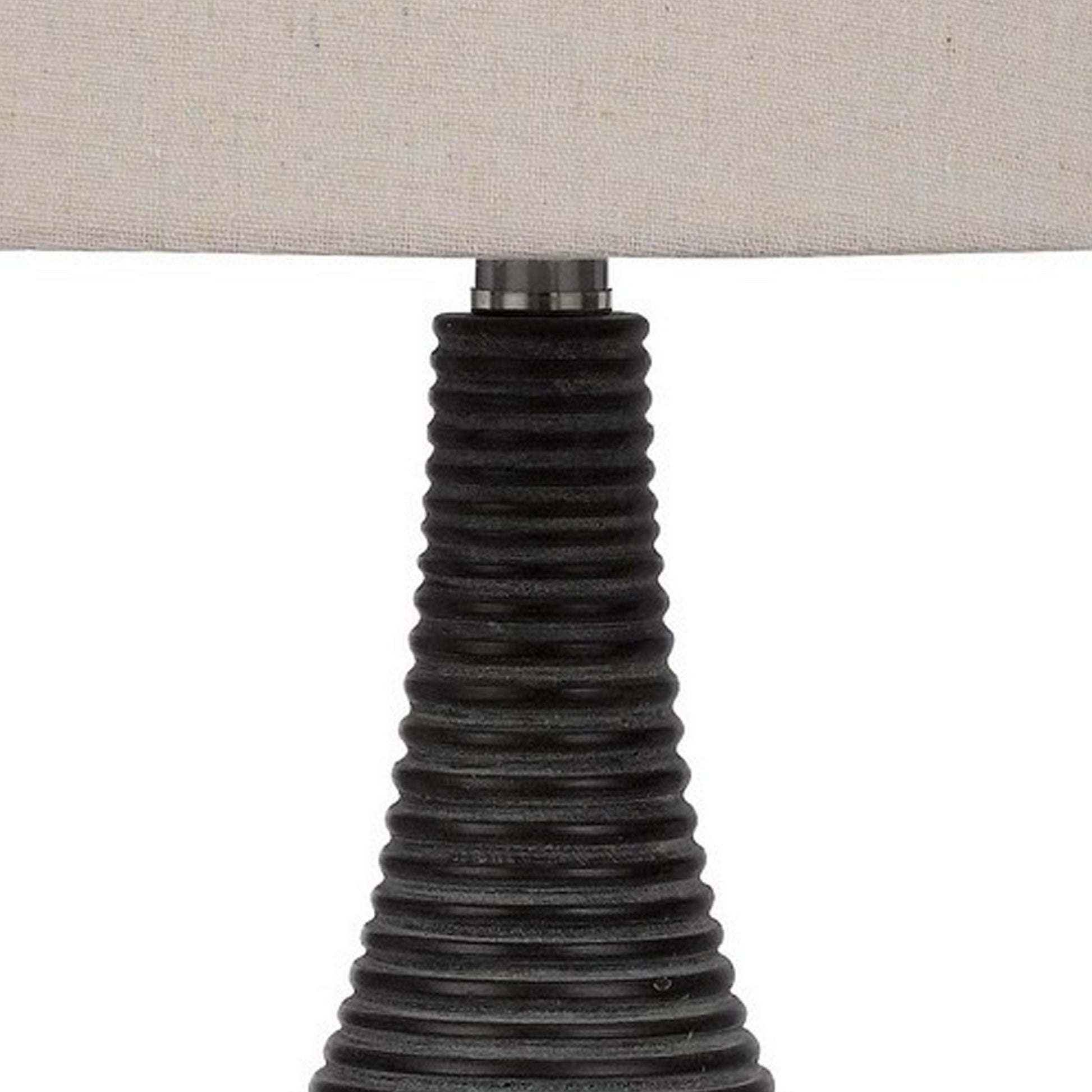 29 Inch Classic Table Lamp Textured Lined Body Ceramic Charcoal Black