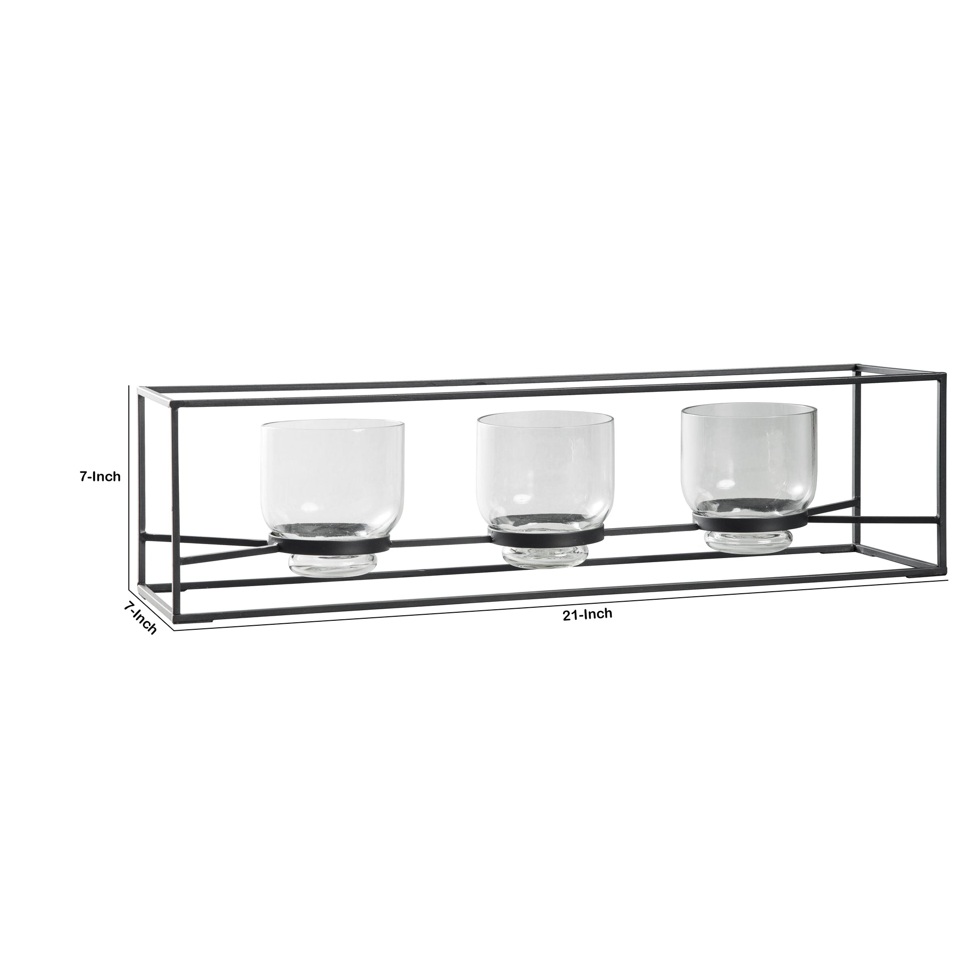 3 Glass Hurricane Candle Holders With Metal Frame Black And Gold