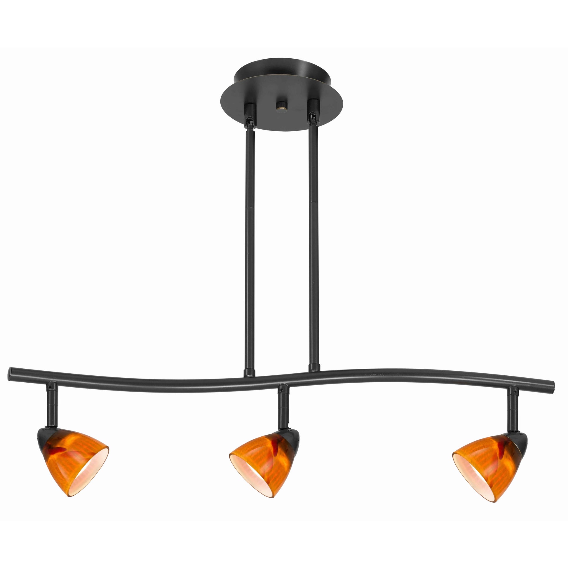 3 Light 120V Metal Track Light Fixture with Glass Shade Black and Orange