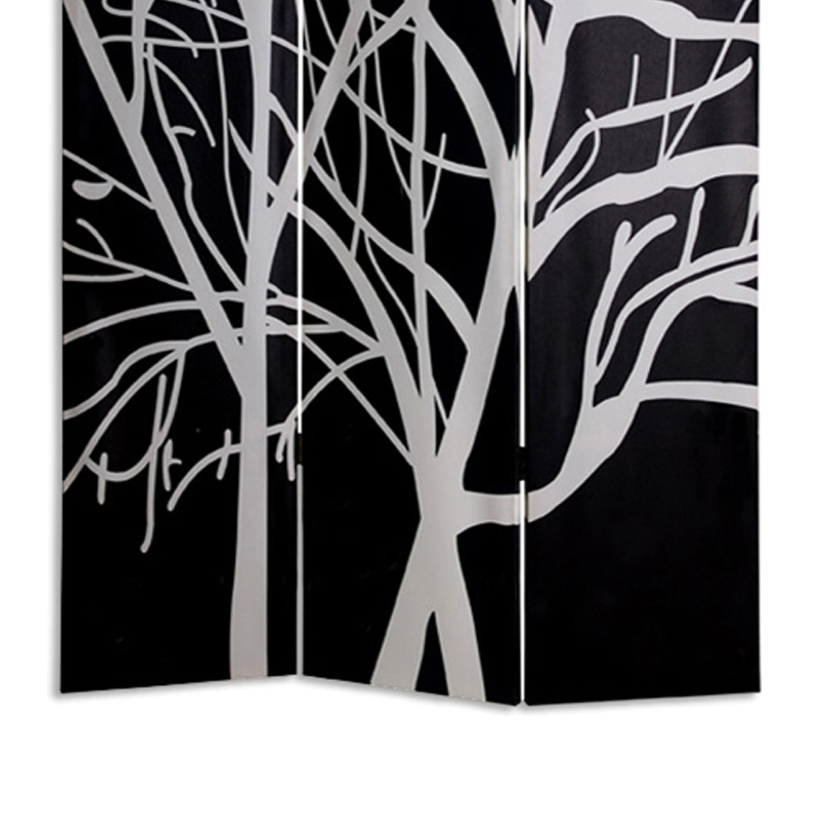 Complement your living space with the addition of this room divider. Constructed sturdily using wood with black and white color finish, it comes with 3 foldable panels featuring a tree branch print that imparts uniqueness to its design. It can be placed in any space not only to serve the best of its purpose but also to embellish your existing decor.