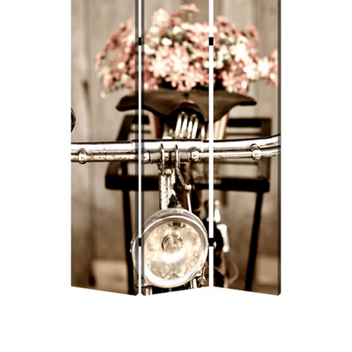 Enjoy this new addition to any decor with this versatile Room divider. It has 3 wooden constructed panel screen covered in canvas fabric with beautiful flowers and cycle print to divide up the sections in rooms, that adds a warm touch of charm to your home. This is a great piece for dividing space or creating a private area.