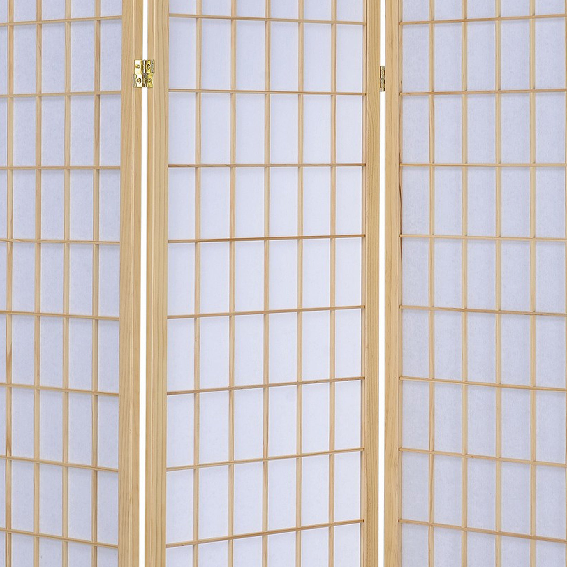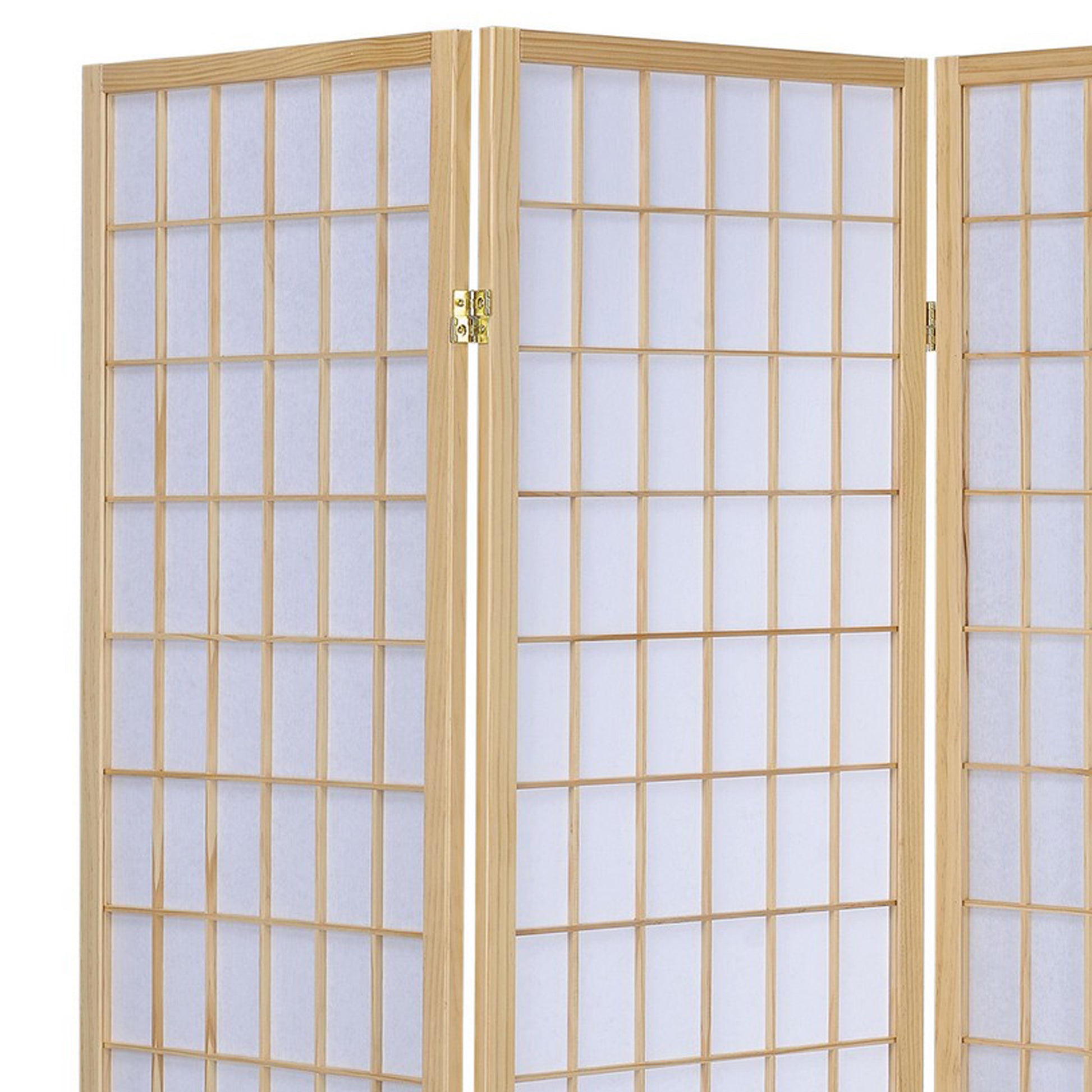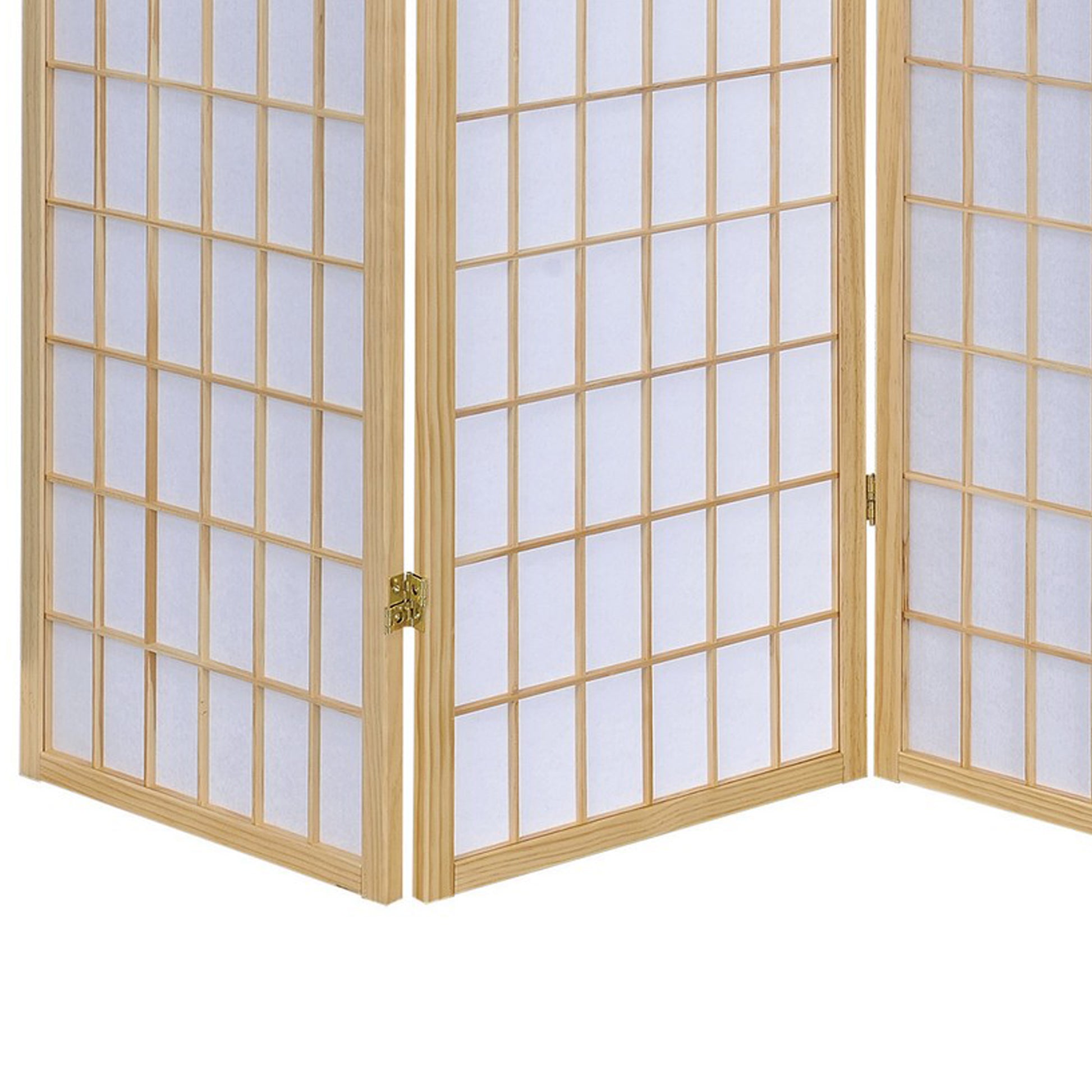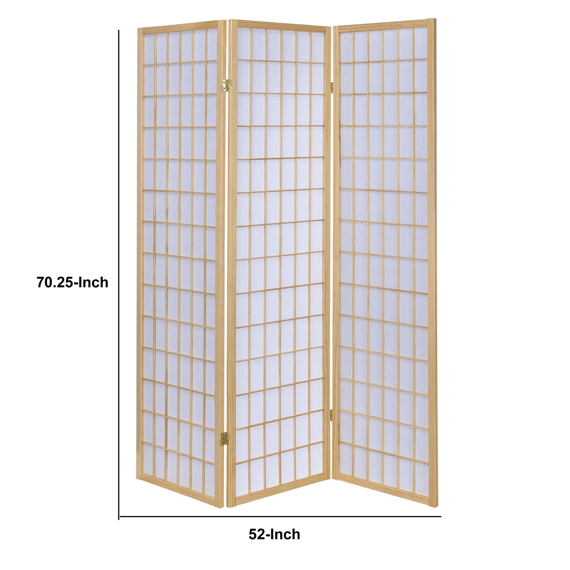 3 Panel Foldable Wooden Frame Room Divider with Grid Design, Brown