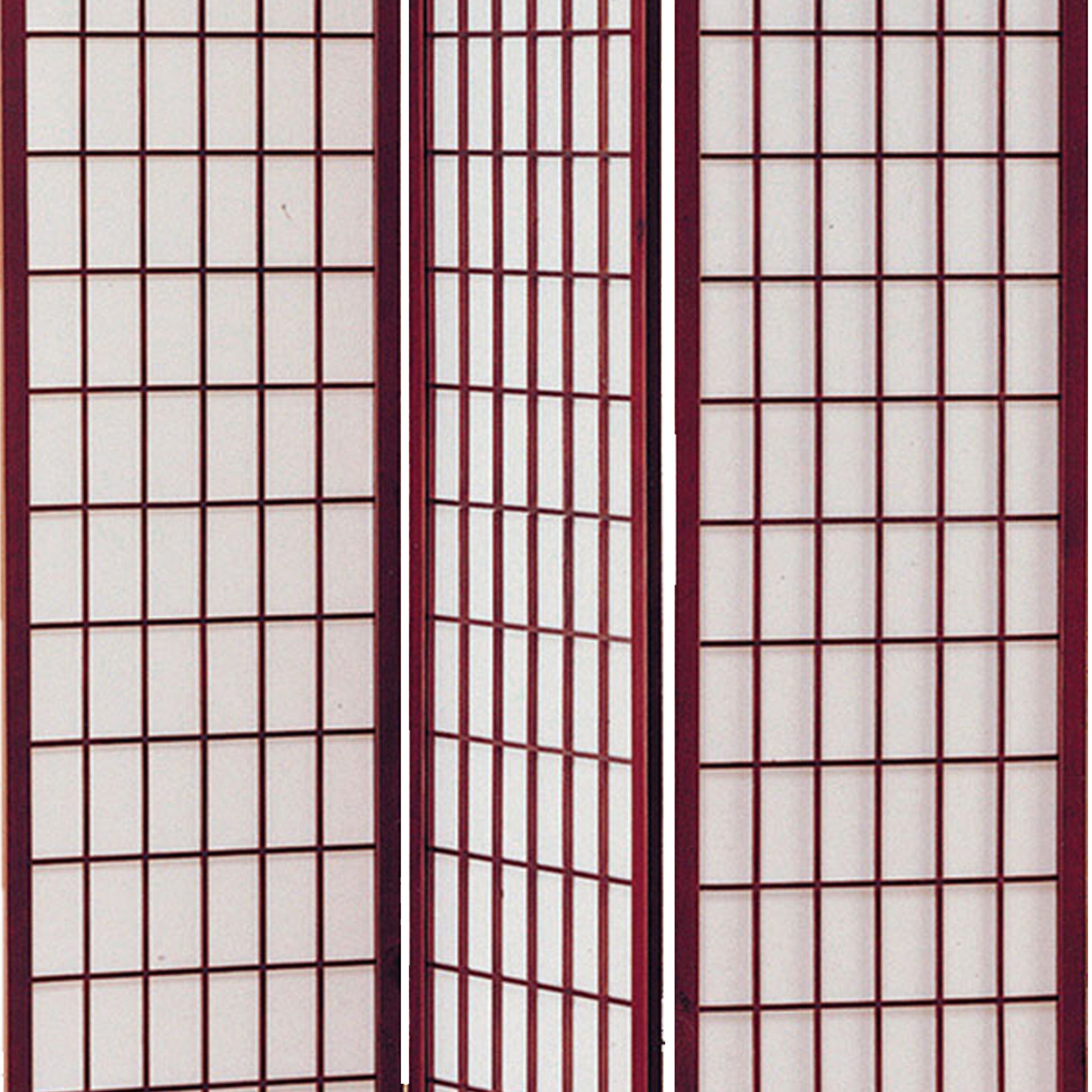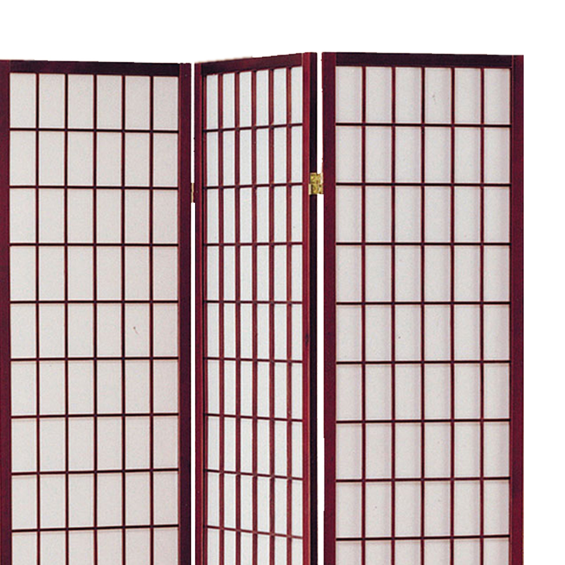 3 Panel Room Divider with Shoji Inserts, Cherry Brown and White