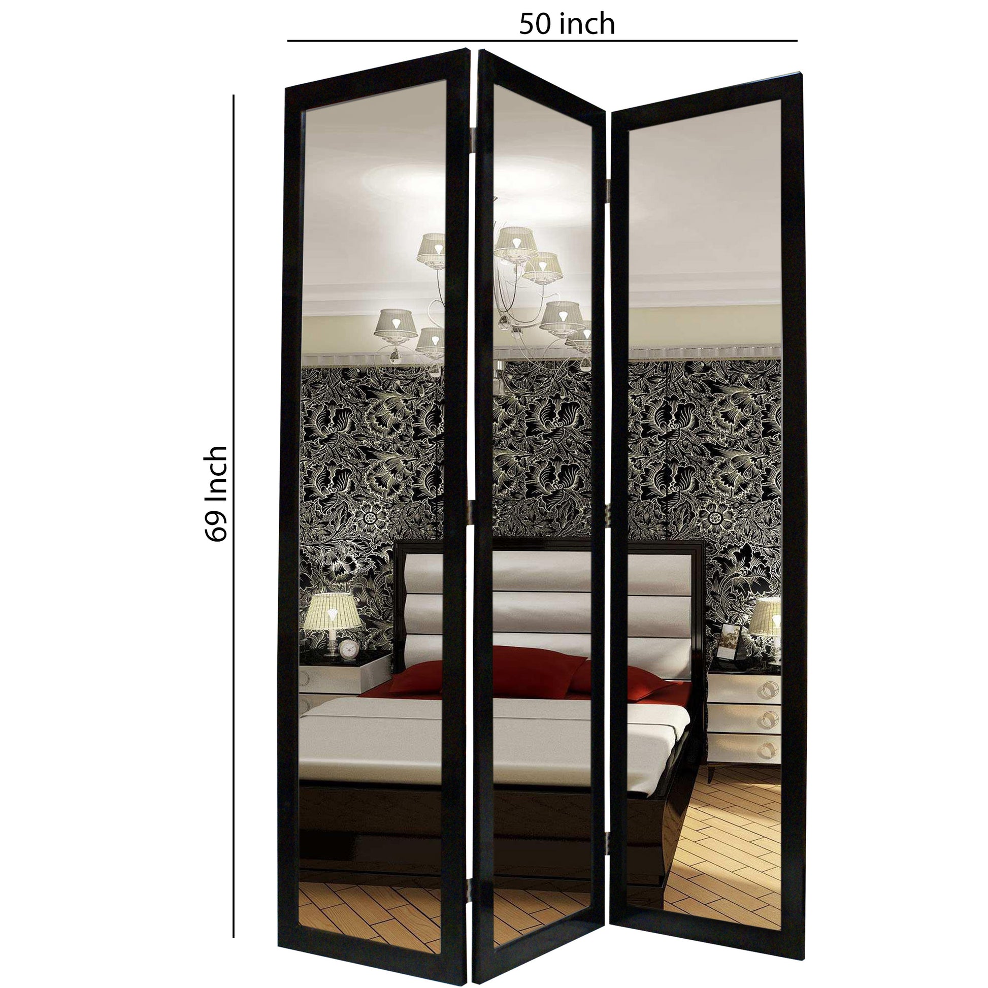 Create a private area in your bedroom with this Room divider which will be a perfect piece. It has 3 mirror panels encased in wooden frame, giving your room a larger and airier look. The black metal hinges facilitate easy foldability, when not in use. Ideal for adding a bit of separation between spaces.