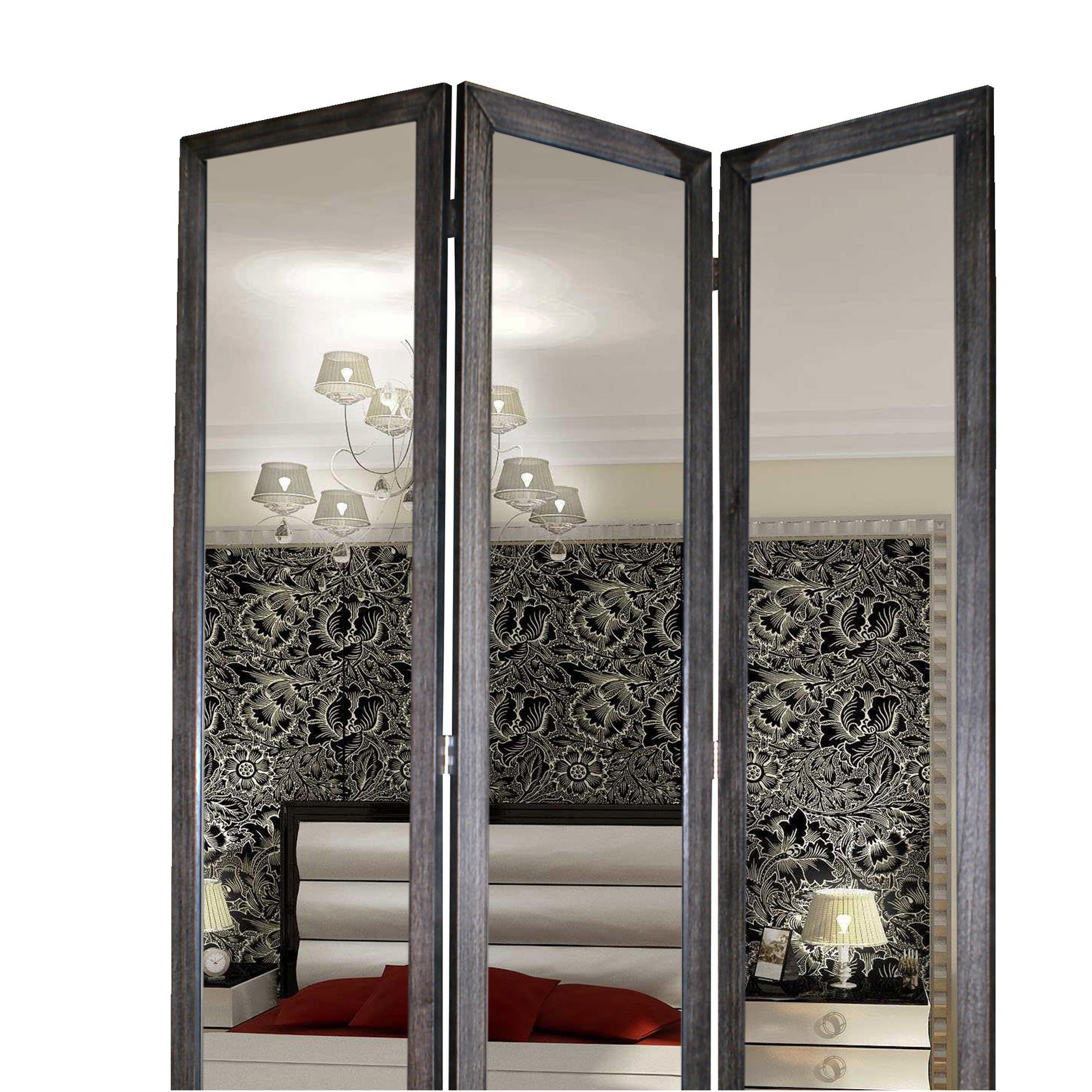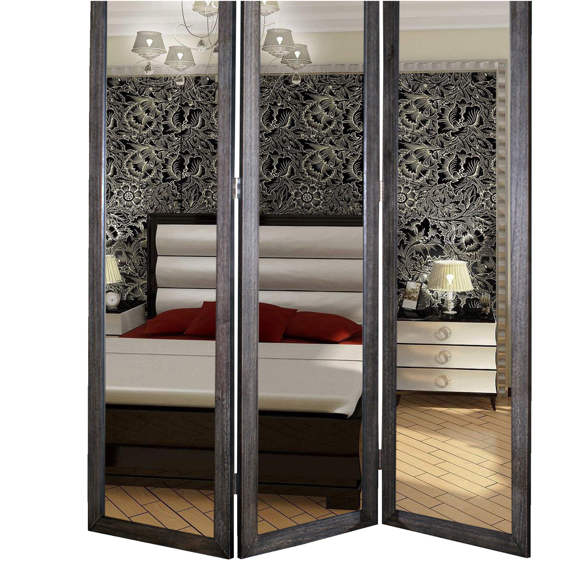 Create a private area in your bedroom with this Room divider which will be a perfect piece. It has 3 mirror panels encased in wooden frame, giving your room a larger and airier look. The black metal hinges facilitate easy foldability, when not in use. Ideal for adding a bit of separation between spaces.