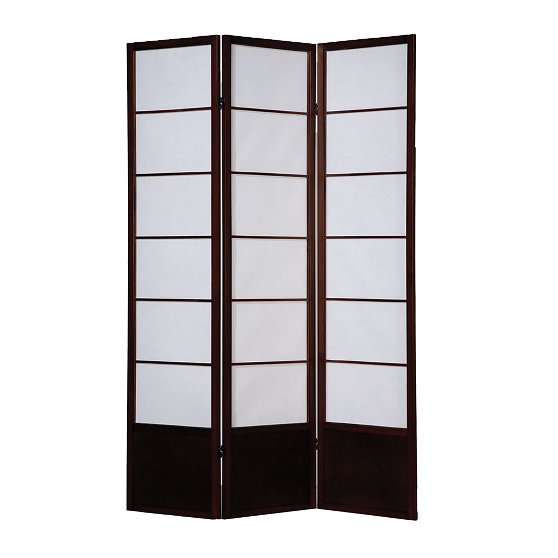 Need a break from your daily mundane chores, bring home this coveted transitional style 3 panel room divider. Provided with a foldable mechanism, this wooden room divider showcases shoji paper panel inserts. Incorporated with metal hinges, it will be a perfect addition to your existing decor.