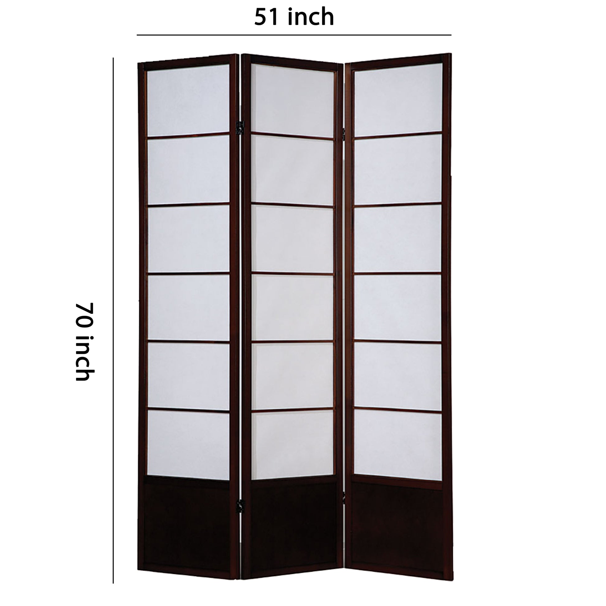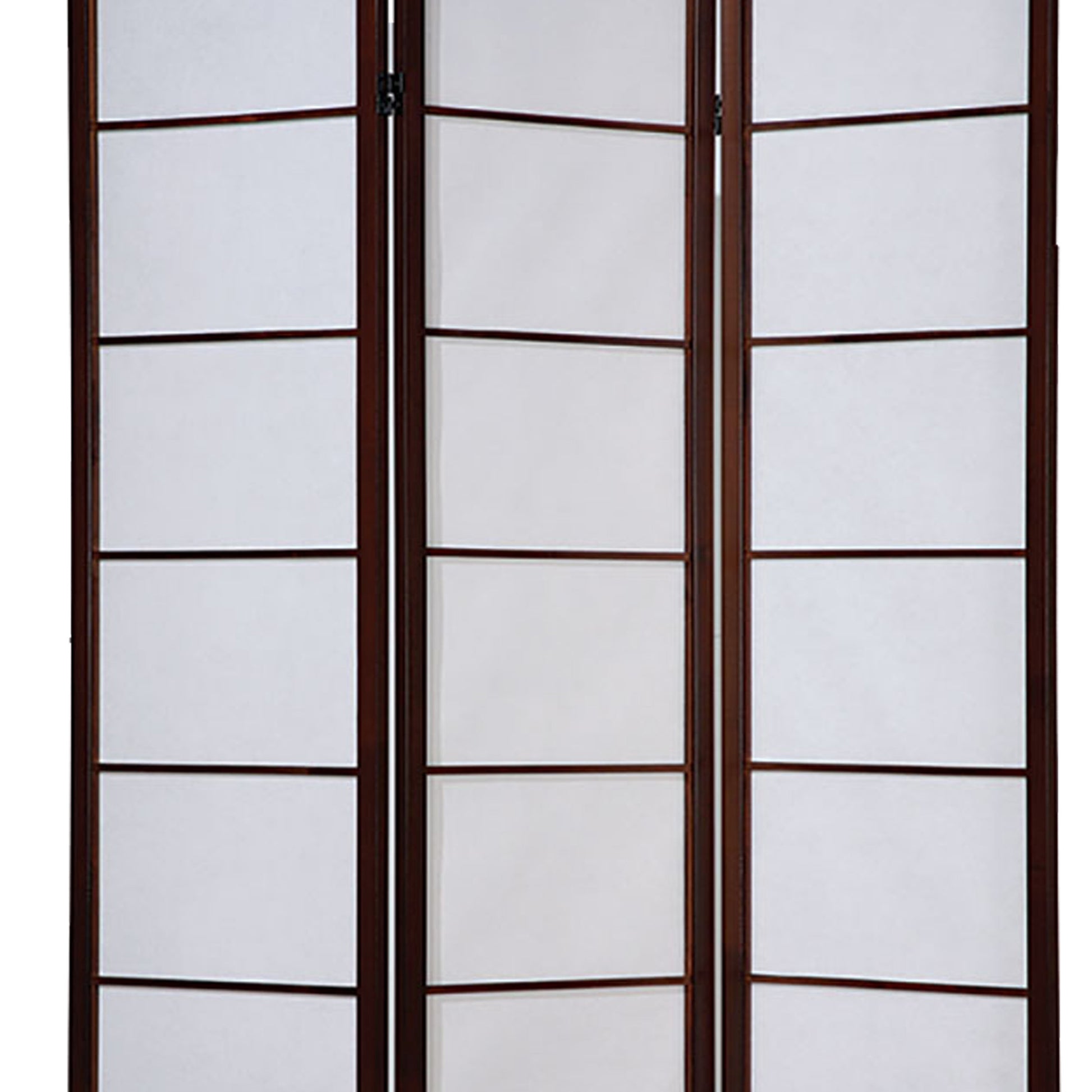 3 Panel Wooden Room Divider with Shoji Paper Inserts,White and Cherry Brown