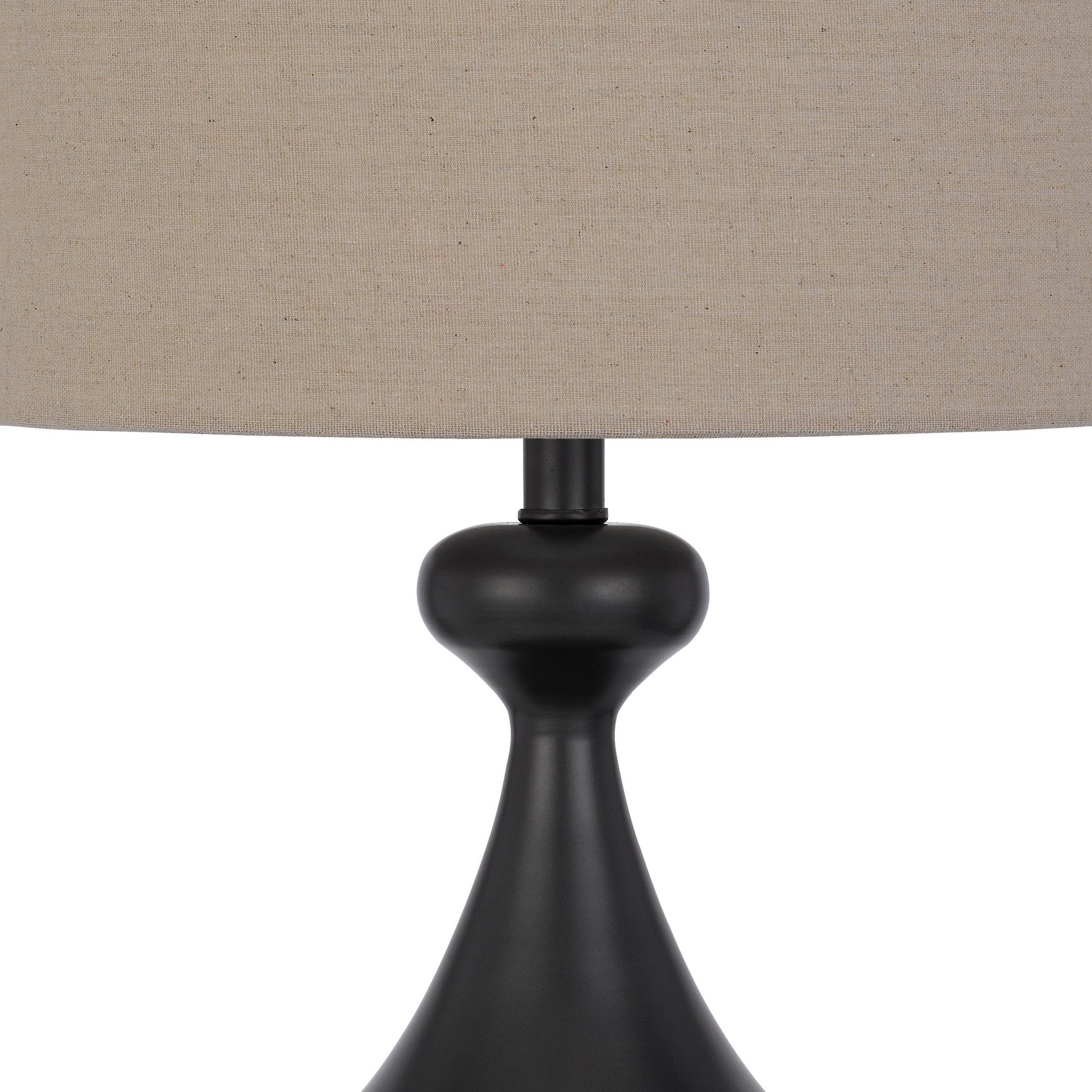Sophisticated and subtly classy, this modern table lamp is meticulously crafted with a two toned frame, an oatmeal beige fabric hardback shade that cleanly and softly filters light, and a stylishly contrasting black metal body and rubberwood platform base, all coming together to form a modern piece that seems to sing with both form and function in a distinct, compact package.