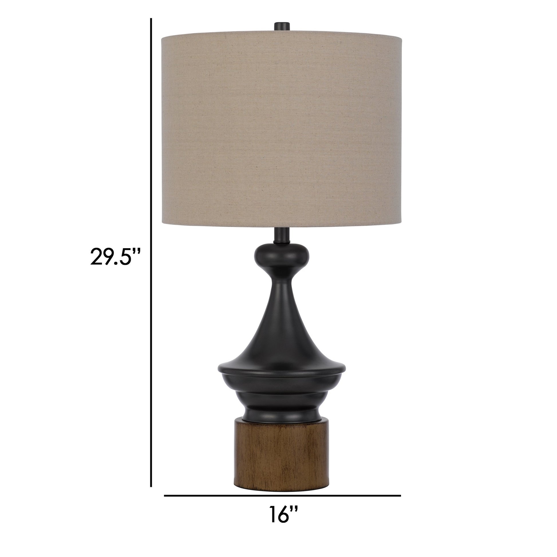 30 Inch 3 Way Rubberwood Table Lamp Beige Fabric Shade Black Metal Body