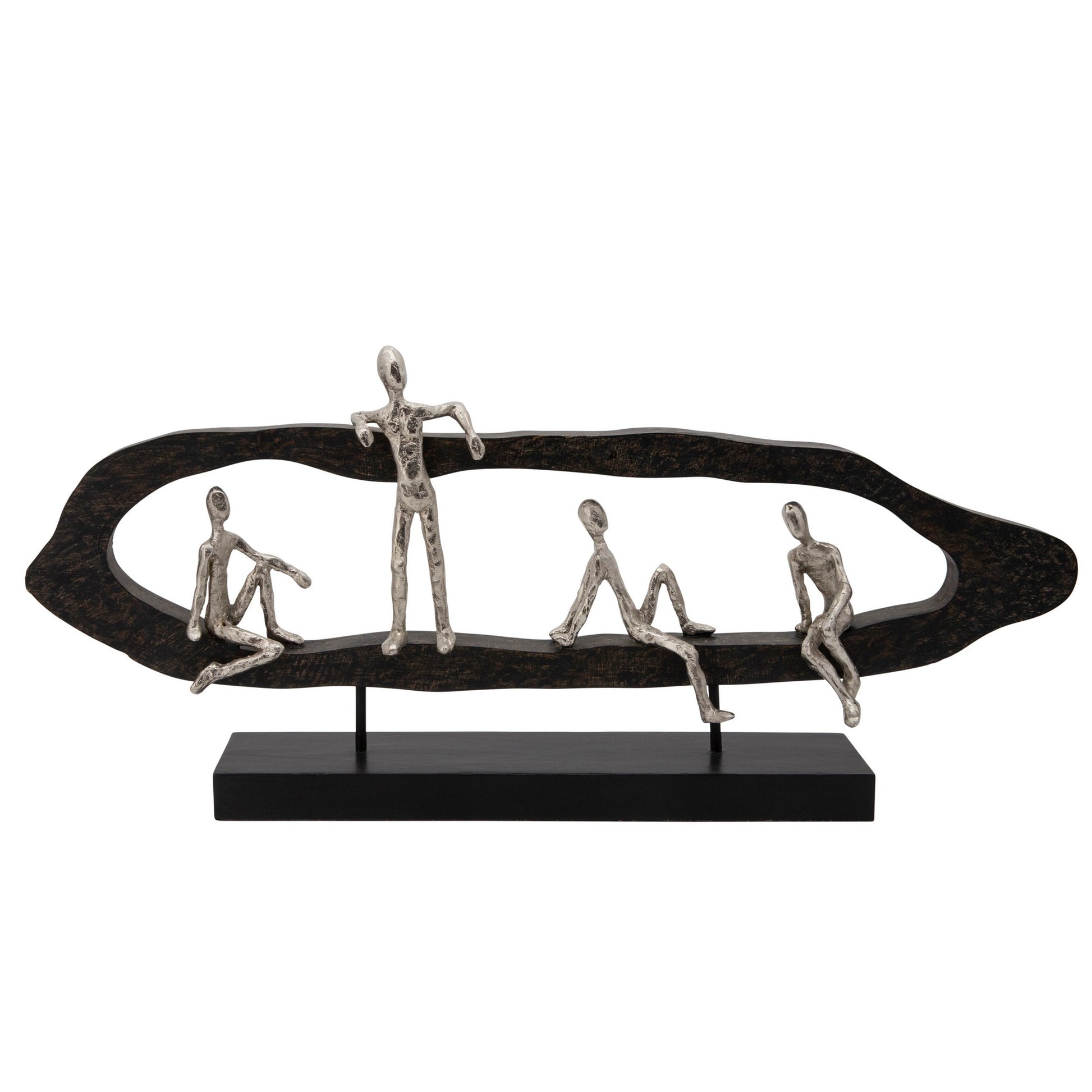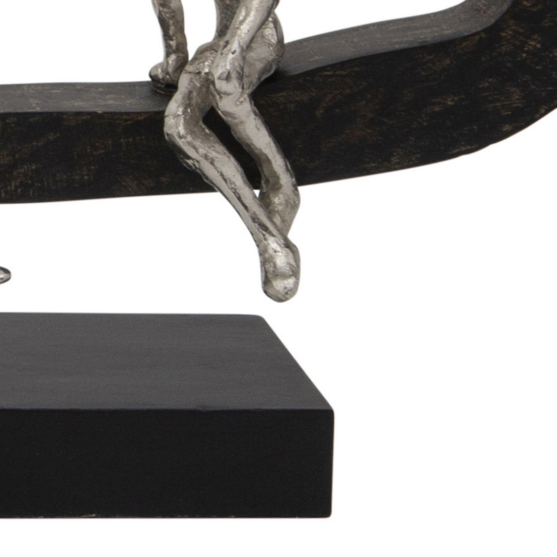 30 Inch 4 Men Hanging Out Accent Decor, Black Wood Silver Accented Metal