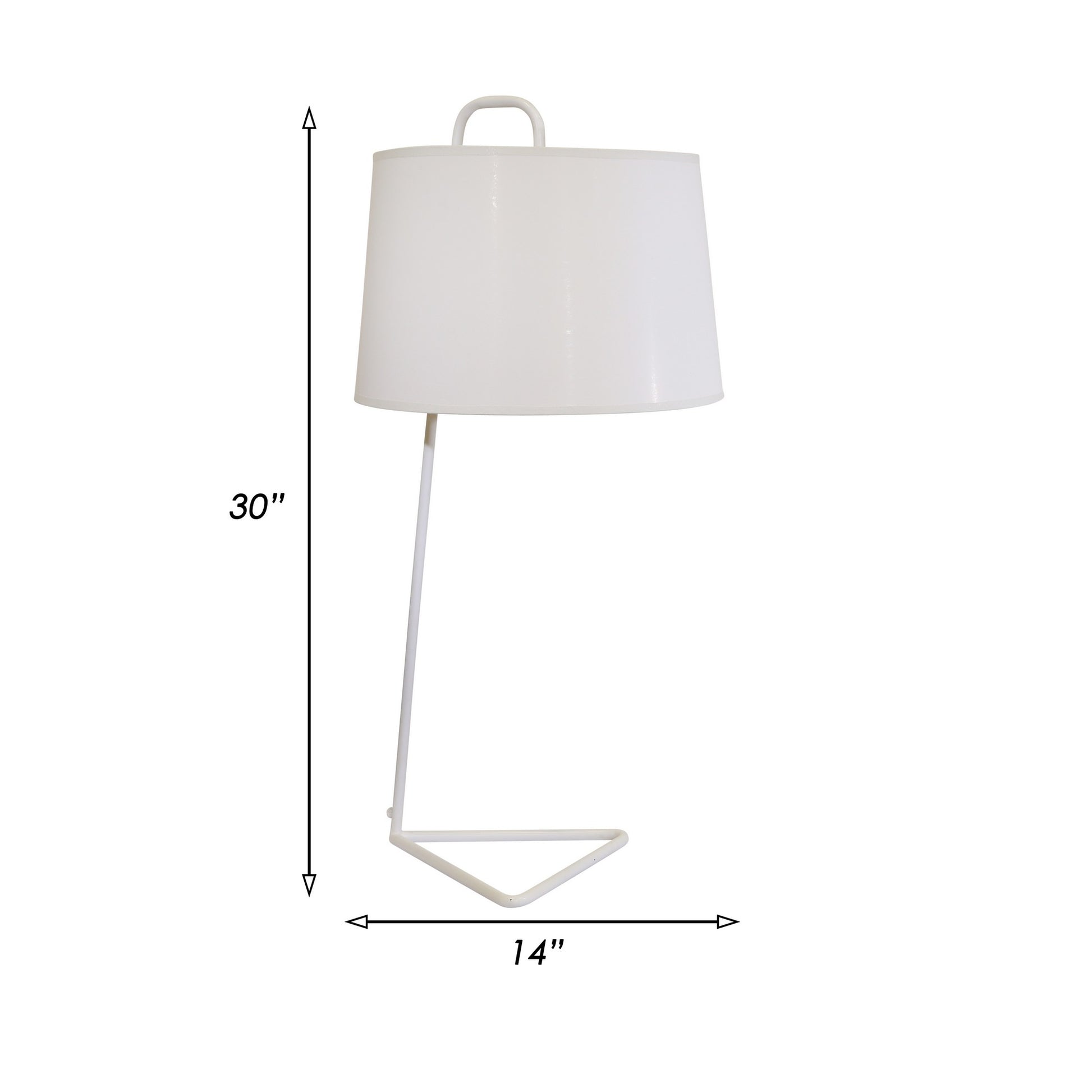 30 Inch Contemporary Metal Table Lamp with Triangular Base White Shade