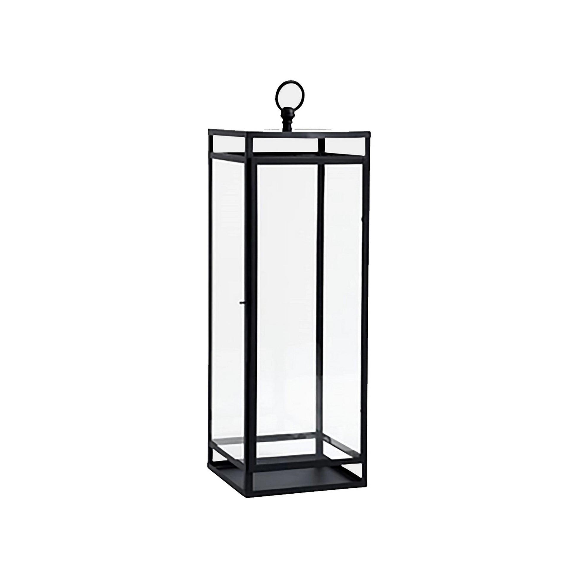 Crafted with a distinct industrial charm, this gorgeous and modern metal lantern epitomizes functionality while bringing with it a distinct and unique sense of beauty. With a lightweight iron frame in a bold black finish and clear glass sides, this is a perfect piece for lighting any scene with naturalistic warmth, or for simply accenting an already gorgeous living space or lounge.