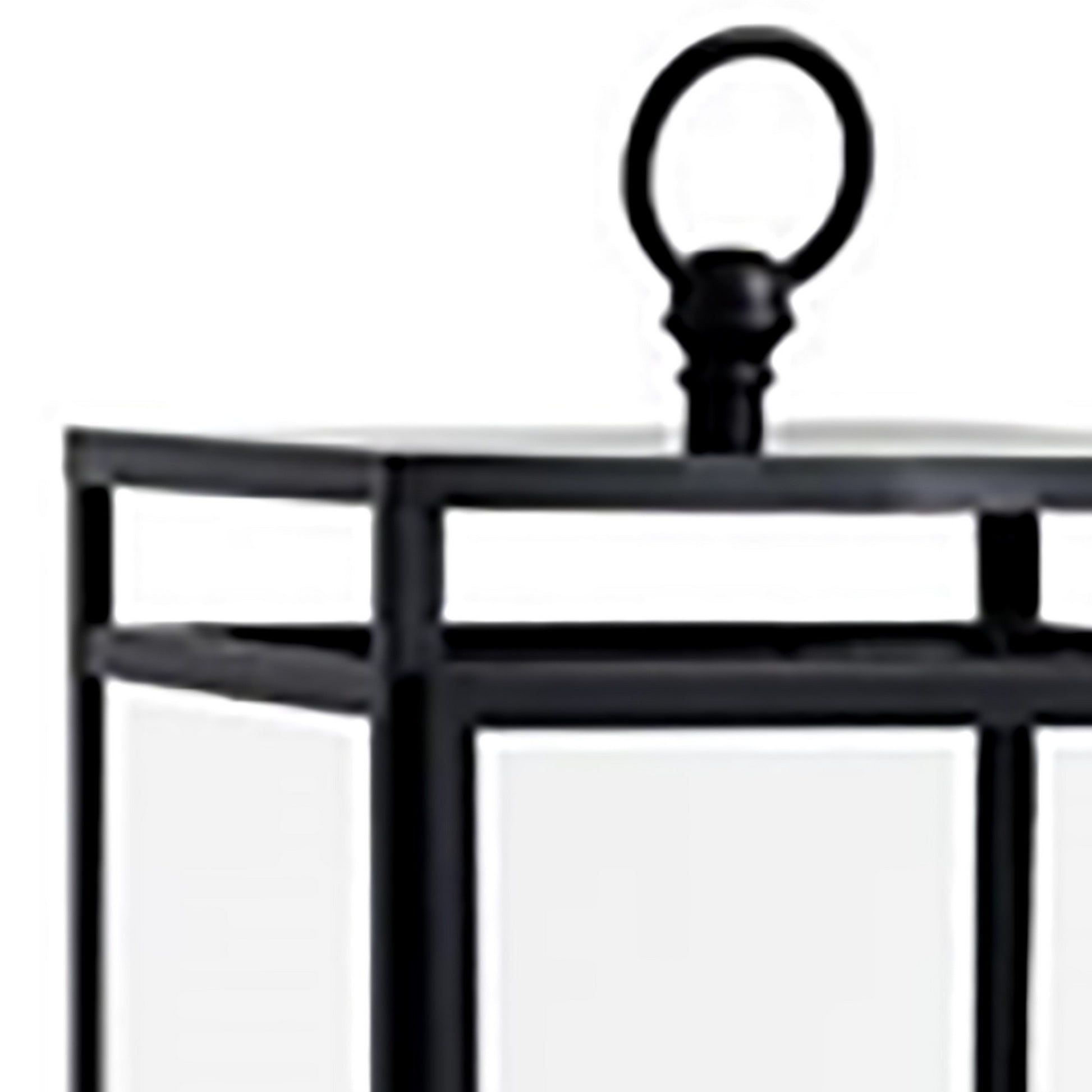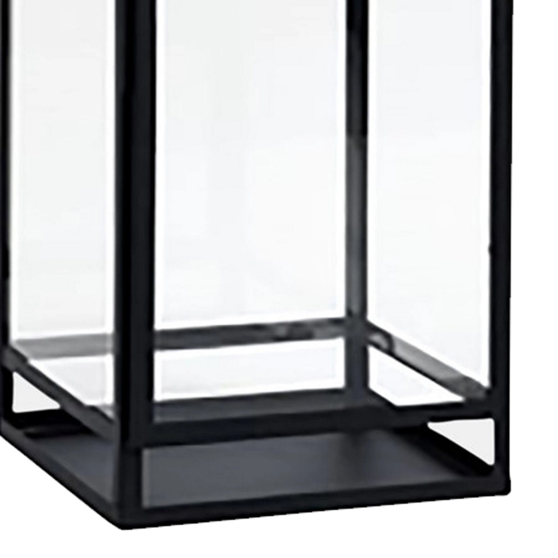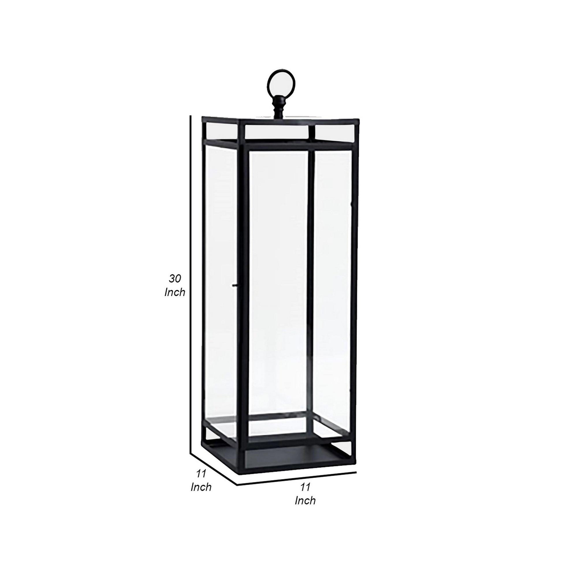 30 Inch Modern Industrial Metal Lantern Glass Panel Sides Black Frame
