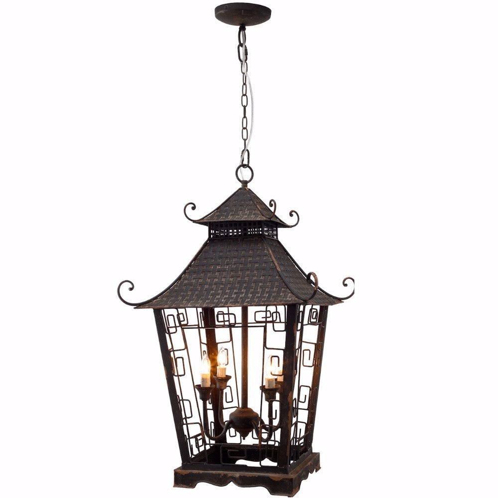 This cultivated and dramatic Chandelier will effortlessly light up any space. Accentuated with a sensational pagoda inspired frame, it holds an admirable designing along with 4 candelabras to lighten up your space.