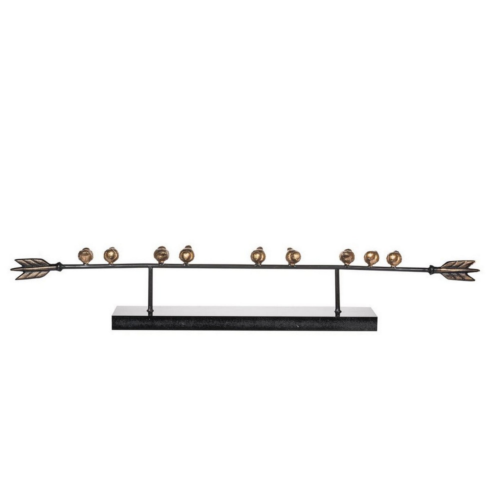 33 Inch Modern Accent Decor Golden Metal Perched Birds On A Black Arrow