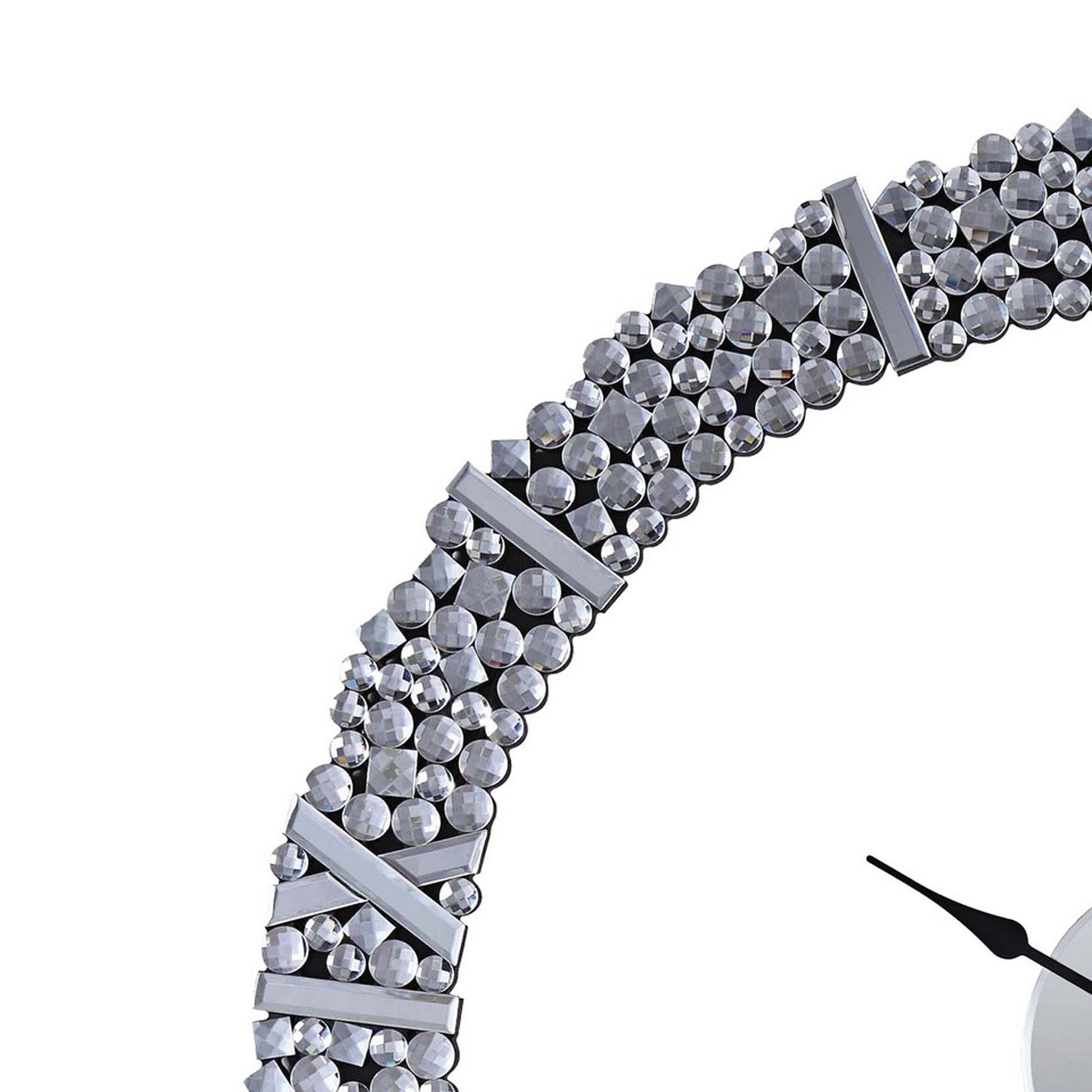 39 Inch Modern Analog Wall Clock Faux Gem Inlay Quartz Silver