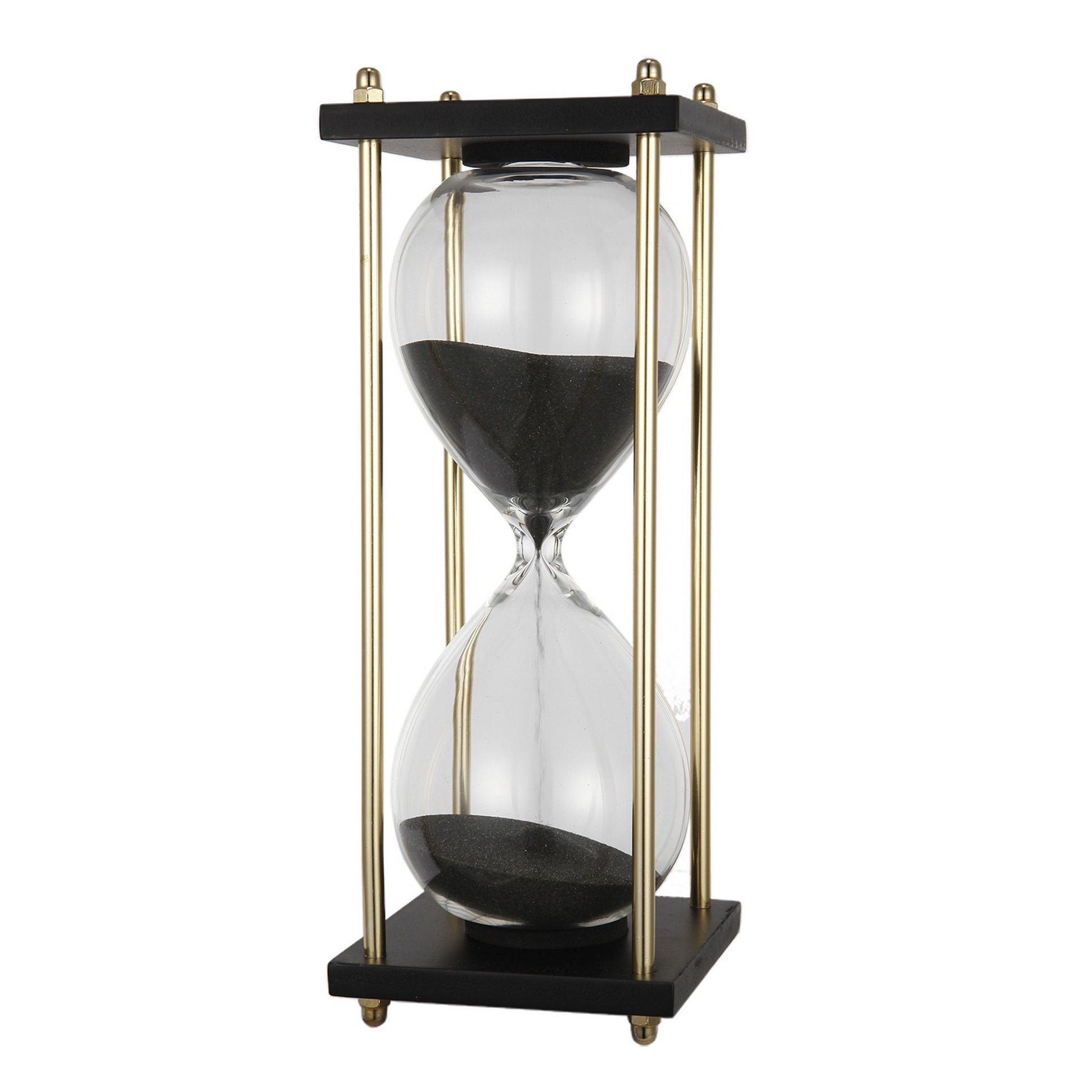 A perfect accessory to the busy kitchen, backlogged office space, or anywhere that could use a hint of beauty and practicality, this gorgeous black and brown 30 minute hourglass with soft tan sand is precisely measured out to count down thirty minutes and is a sturdy, gorgeously crafted way to bring sophistication and style to your desk, counter, or bedside.