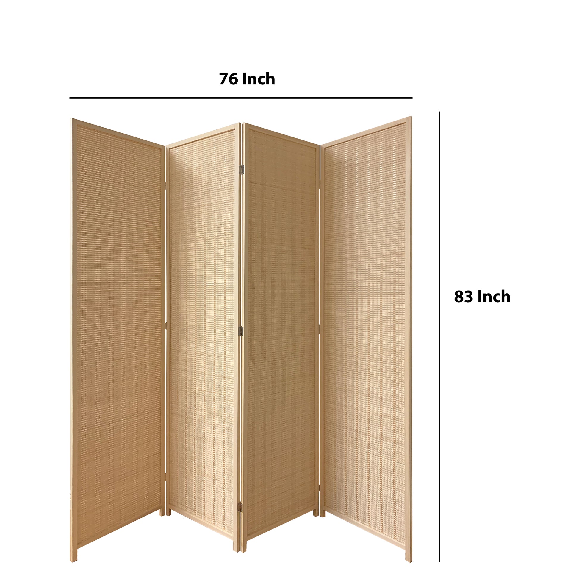 Add some privacy to your place and at the same time compliment your decor setting with this transitional style 4 panel Room Divider which showcases shade roll design. Constructed from bamboo frame, it is accented with beige finish.
