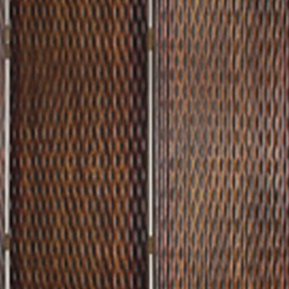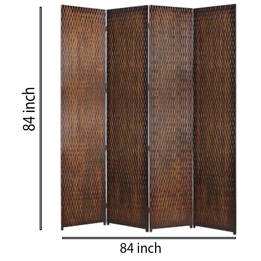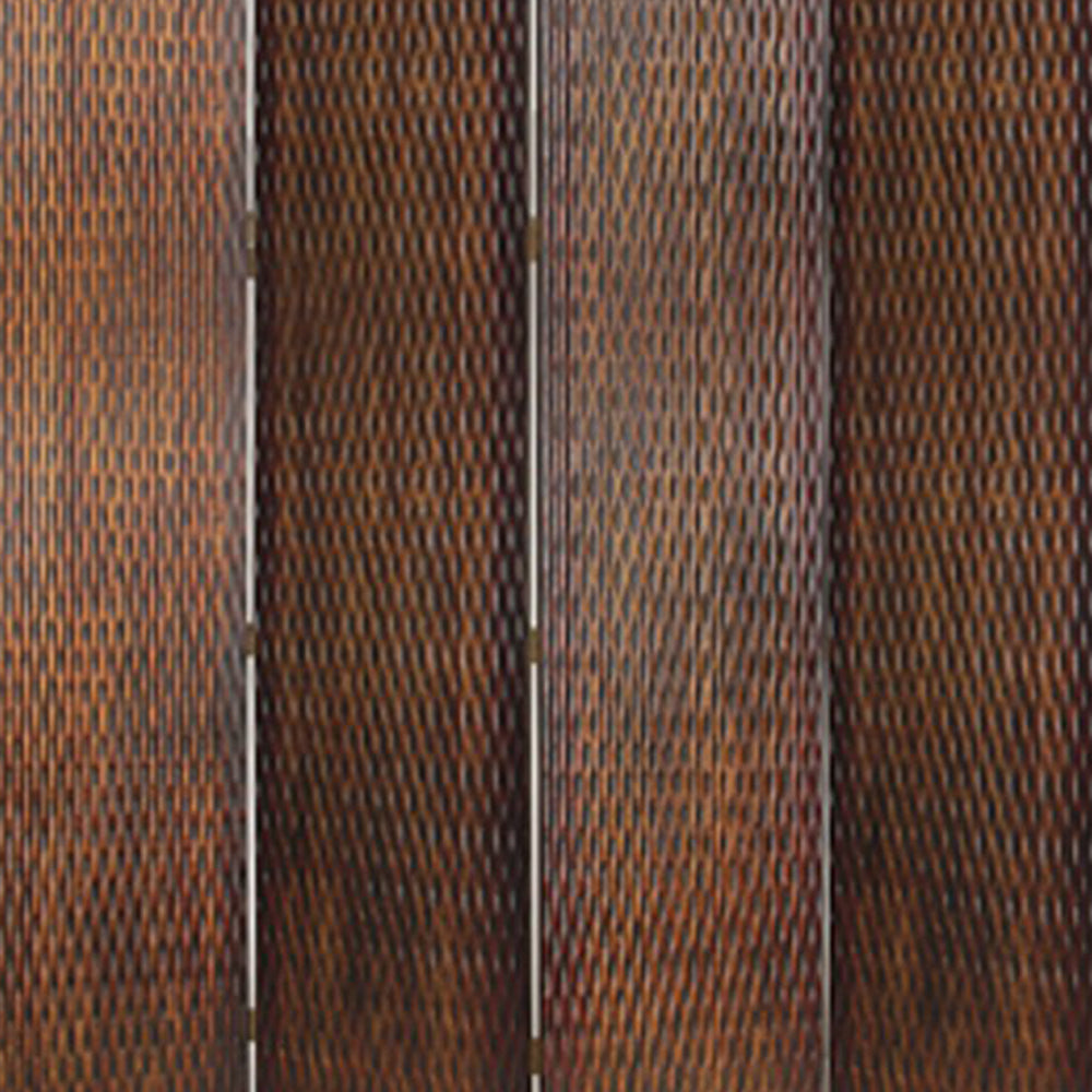 4 Panel Foldable Room Divider with Patterned Wood Panelling, Brown