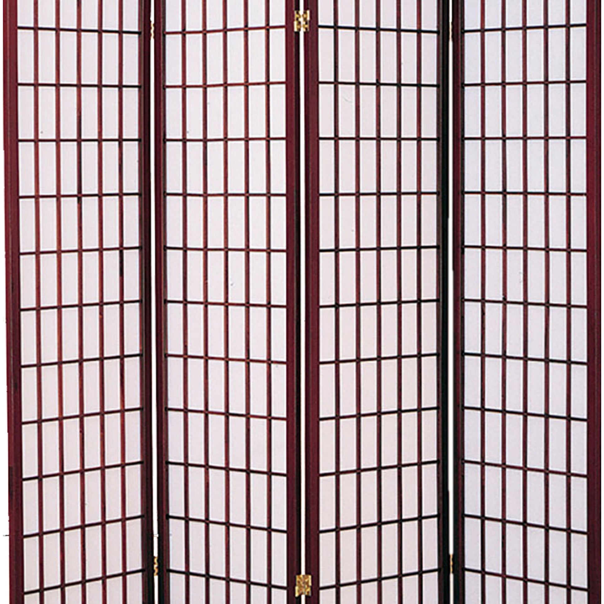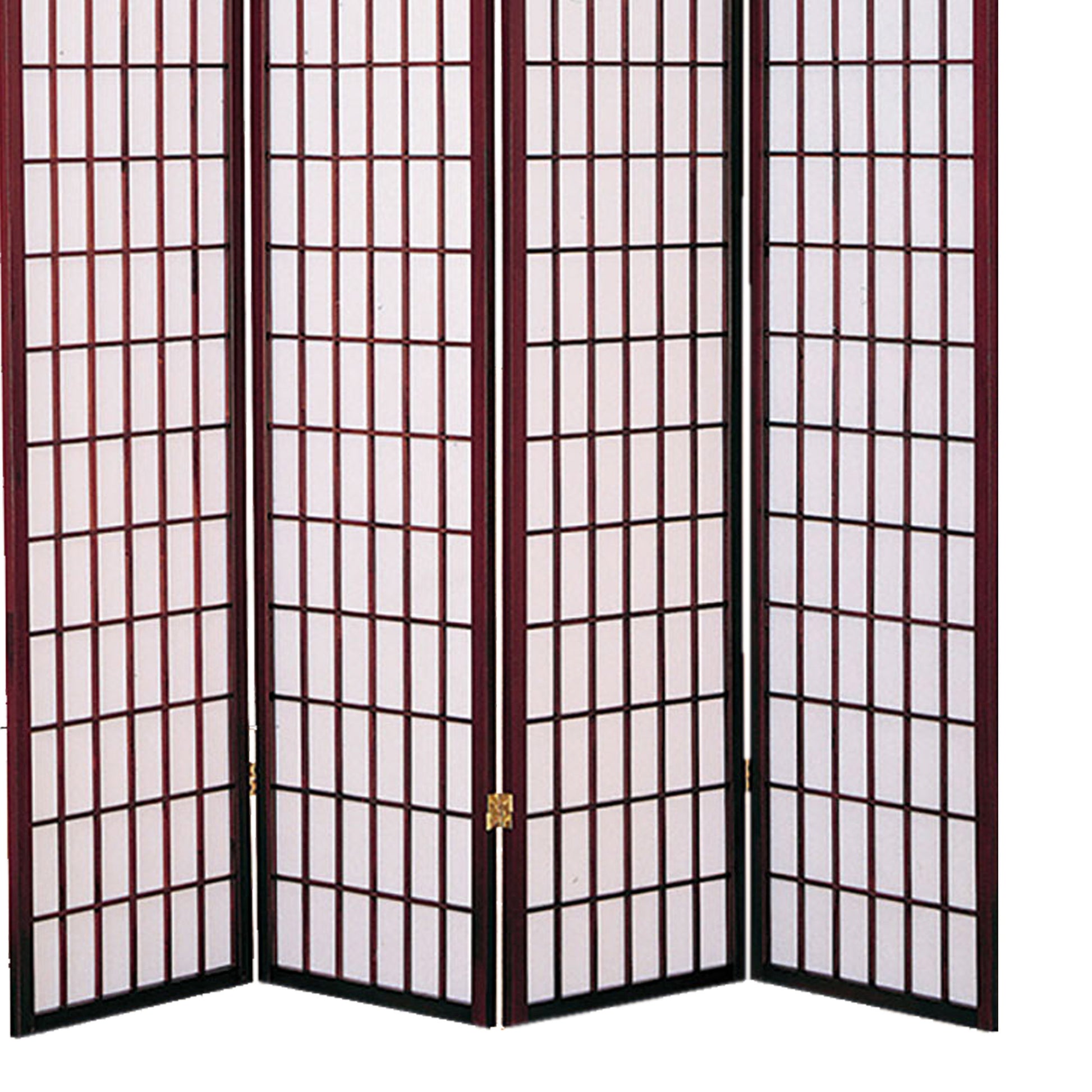 4 Panel Room Divider with Shoji Inserts, Cherry Brown and White