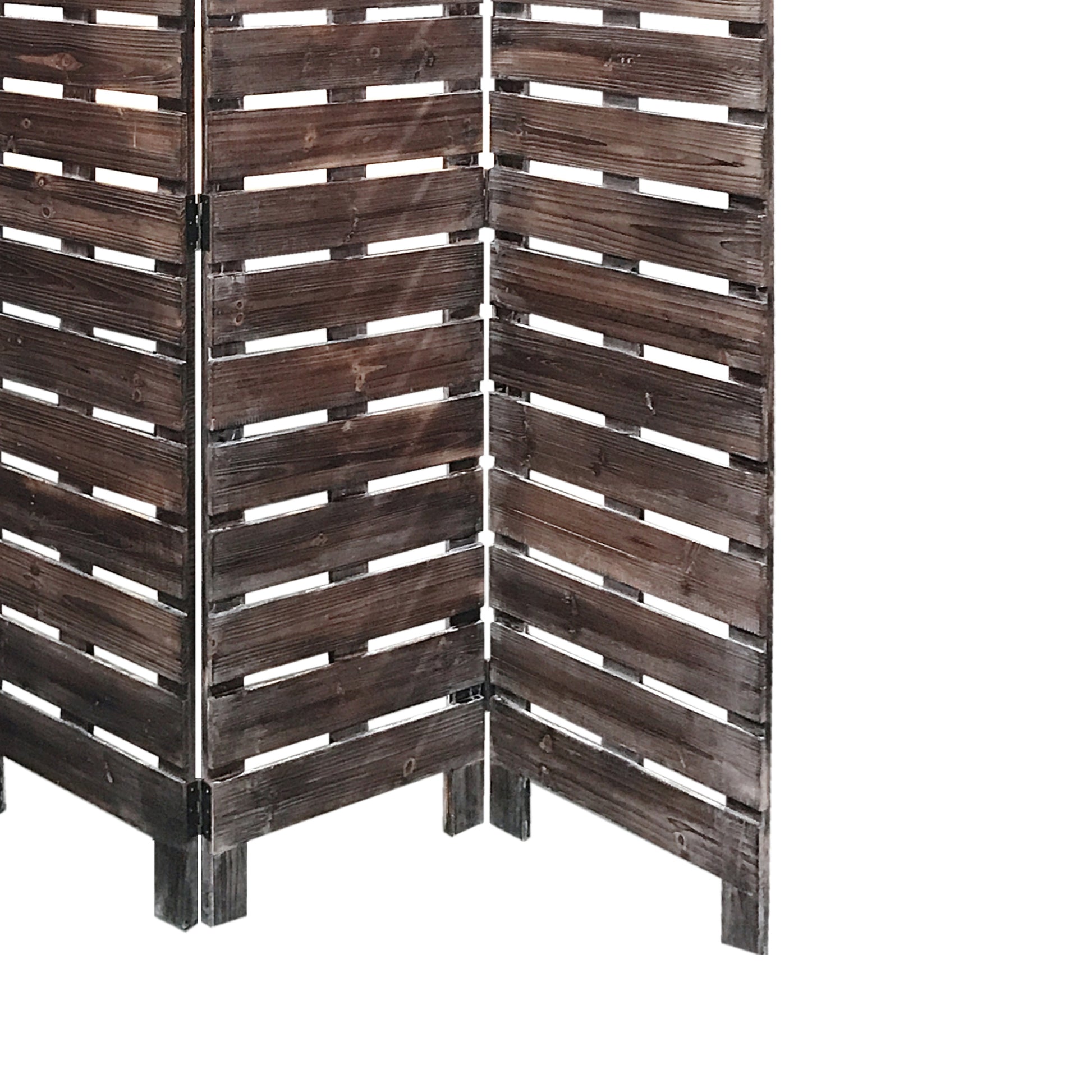 Add some privacy to your place and at the same time compliment your decor setting with this transitional style 4 panel Room Divider which showcases horizontal plank design. Constructed from solid wood frame, it is accented with brown finish.