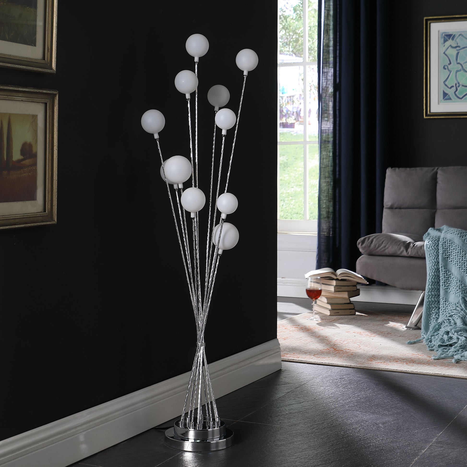 46" In 11-light Acrylic Globe Aluminun Led Chrysanthe Silver Chrome Metal Floor Lamp