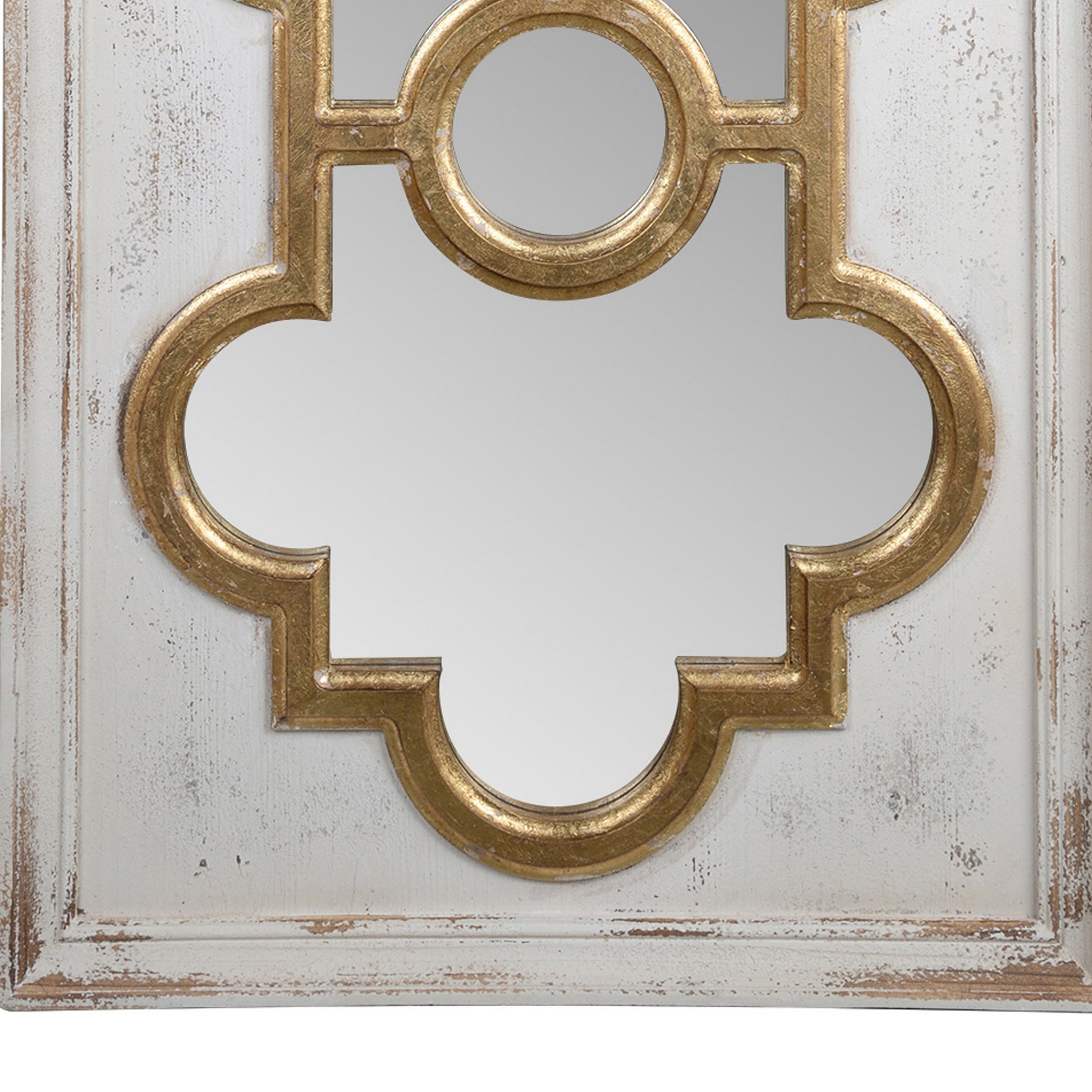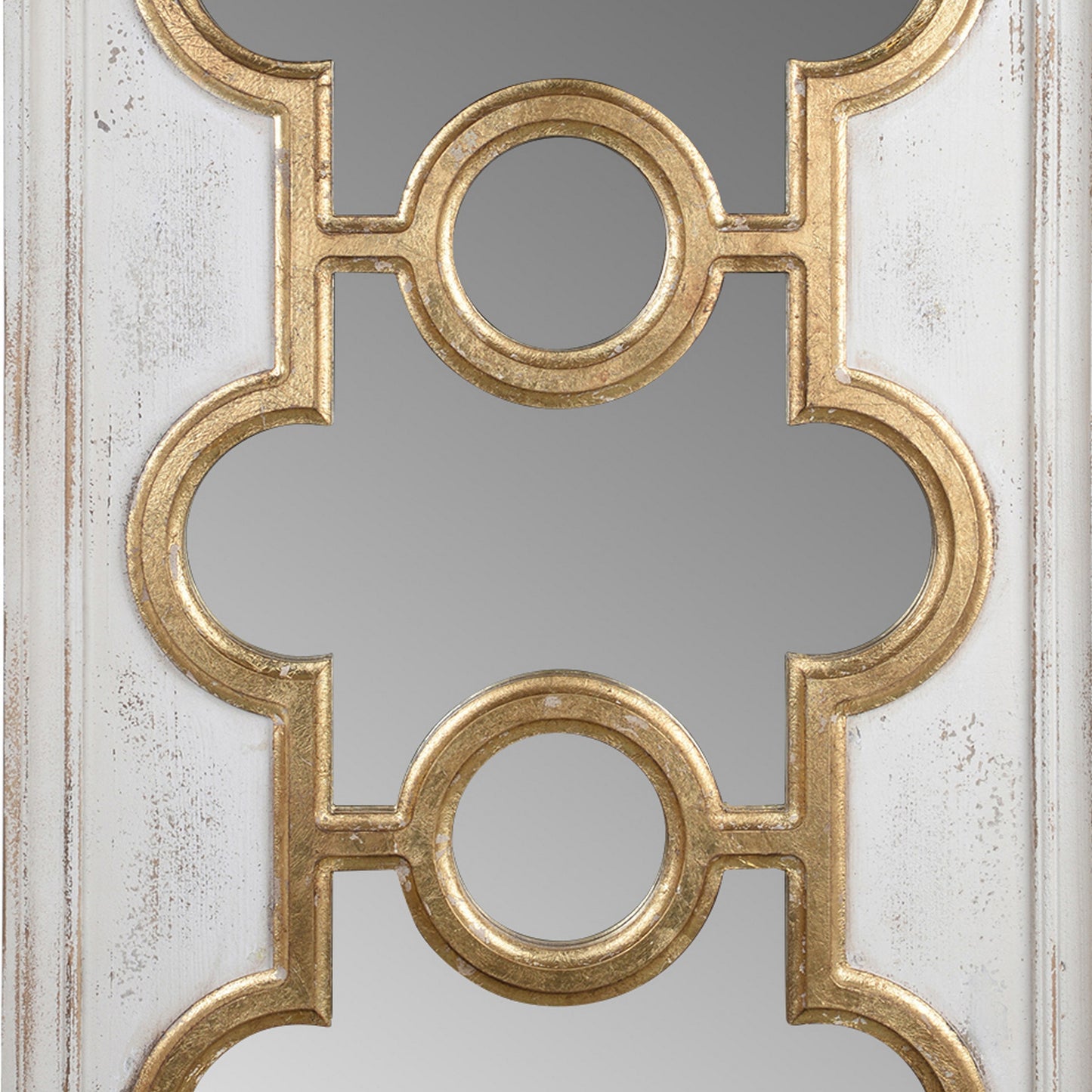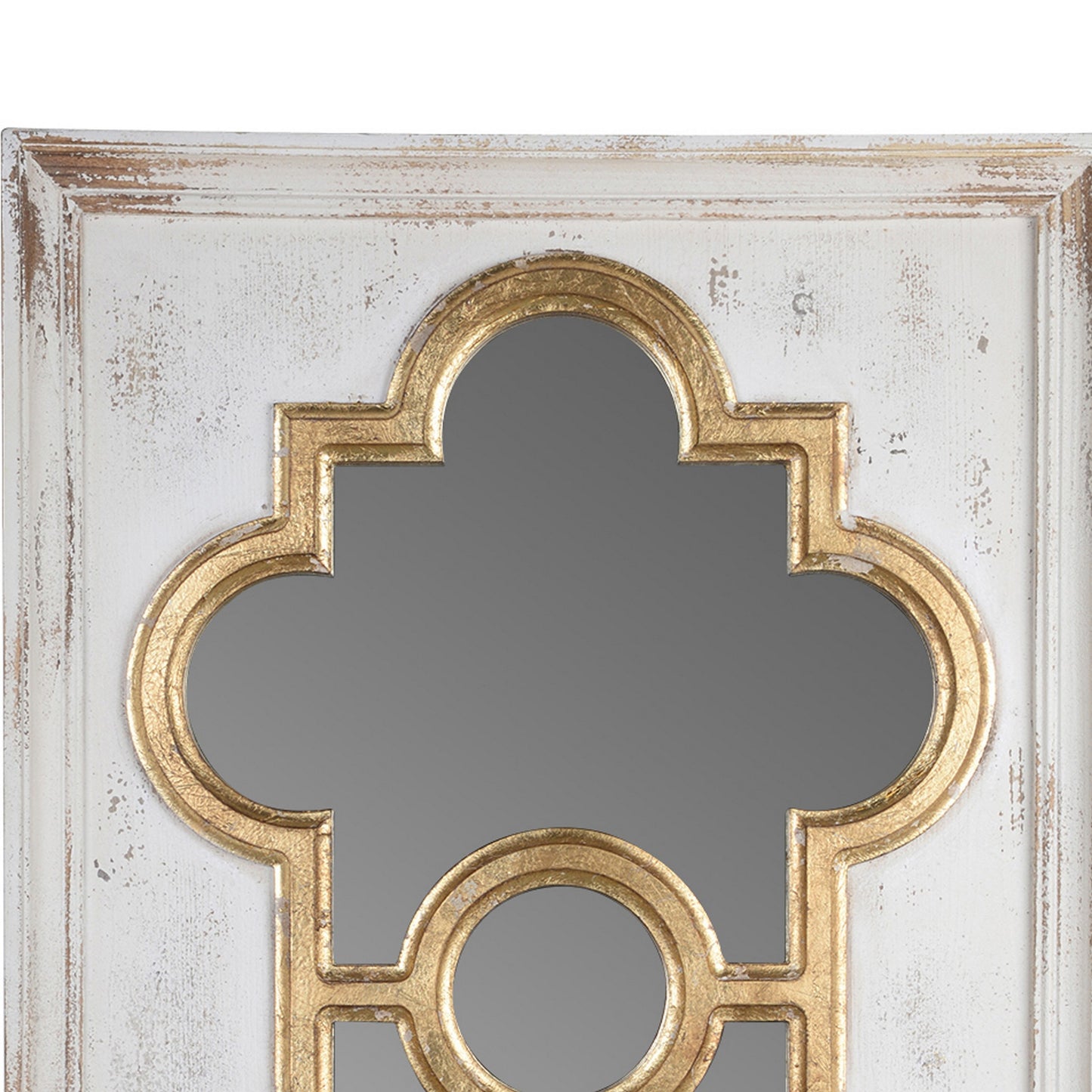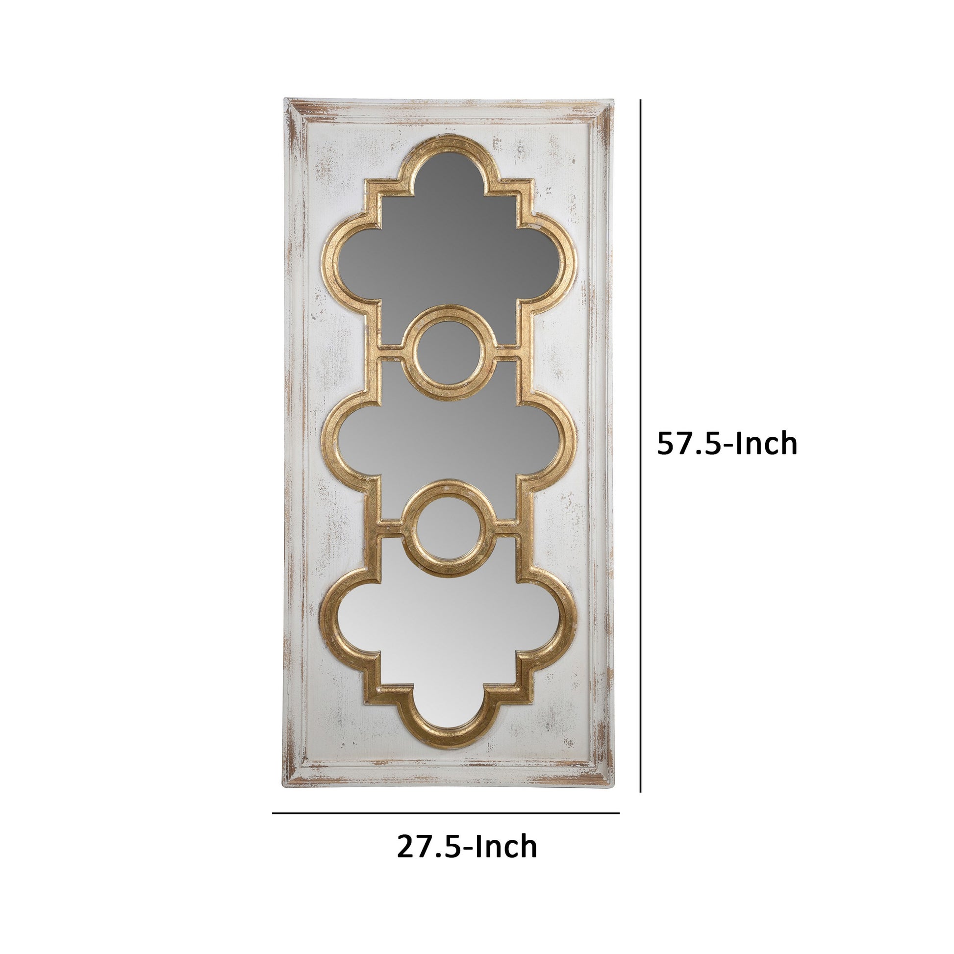 58 Inch Decorative Accent Mirror Gold Ornate Trim Over White Fir Wood