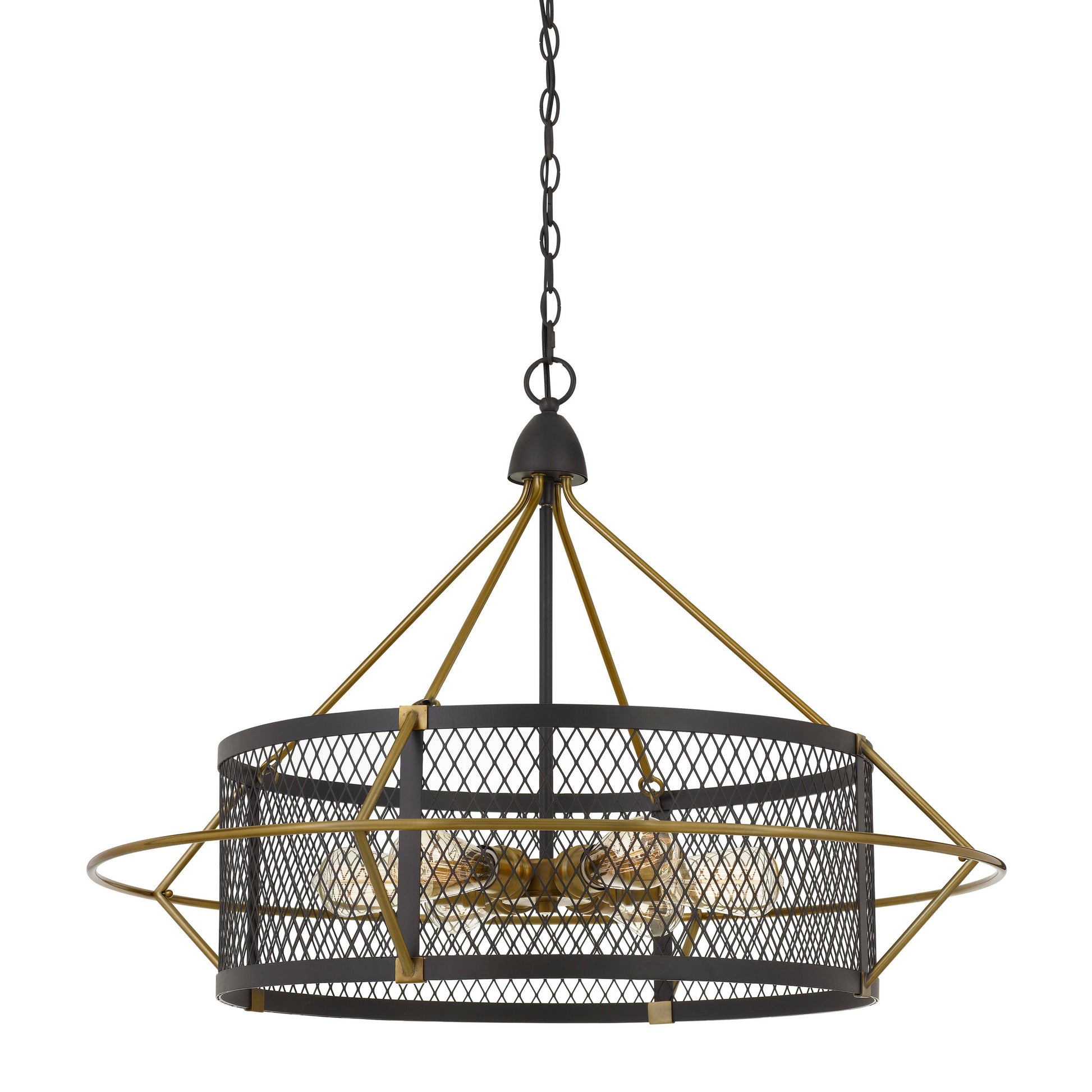 6 Bulb Metal Chandelier With Round Mesh Frame Black And Gold