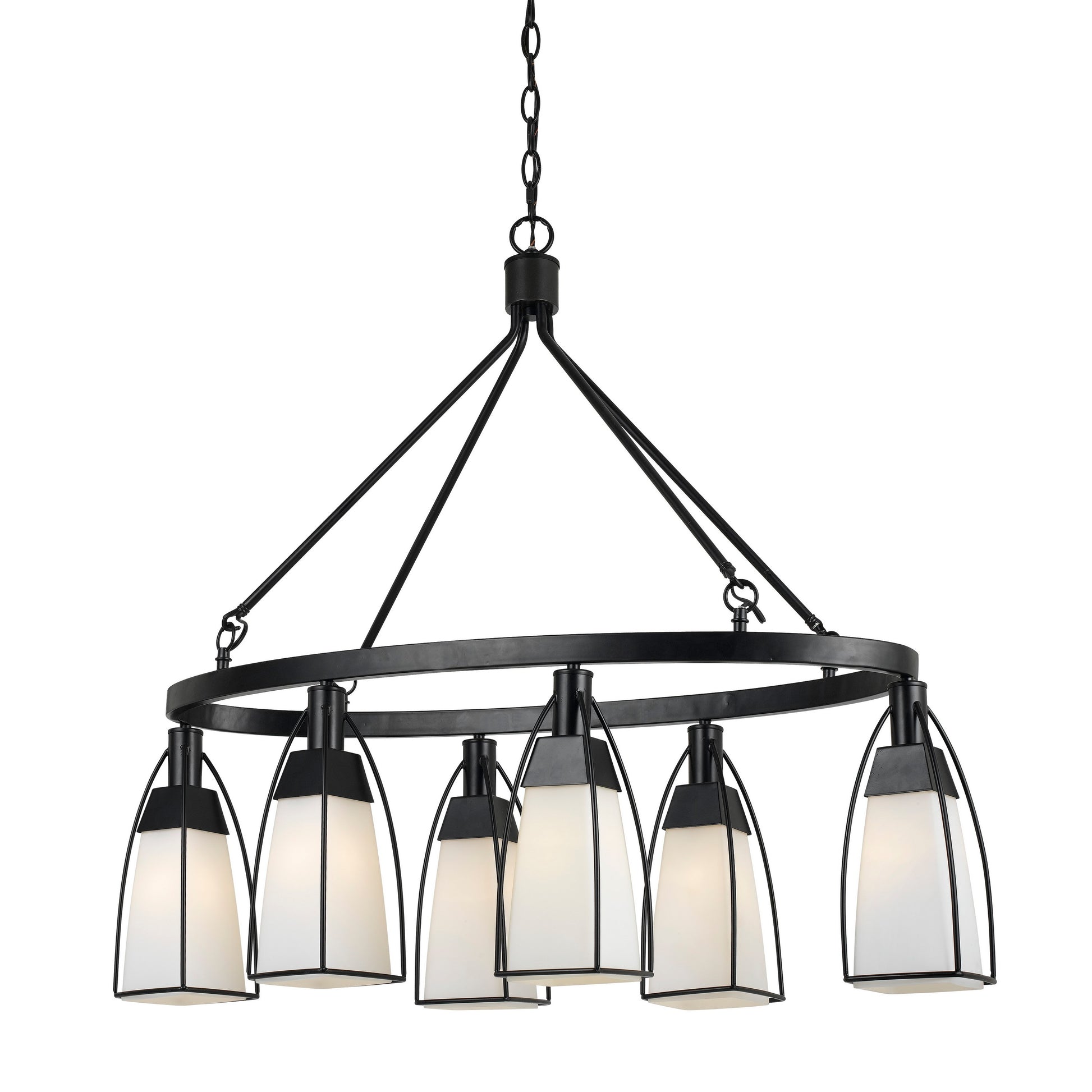 6 Bulb Oval Metal Frame Chandelier With Glass Shades Black And White