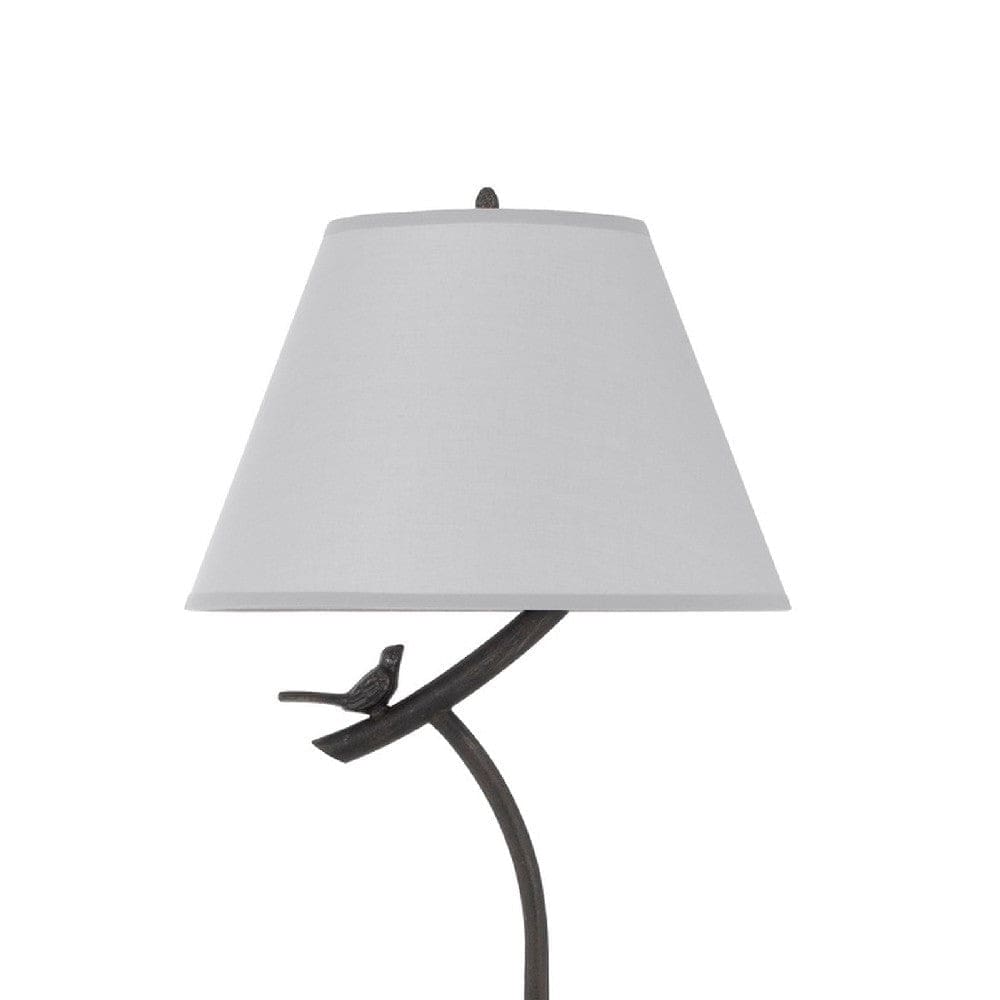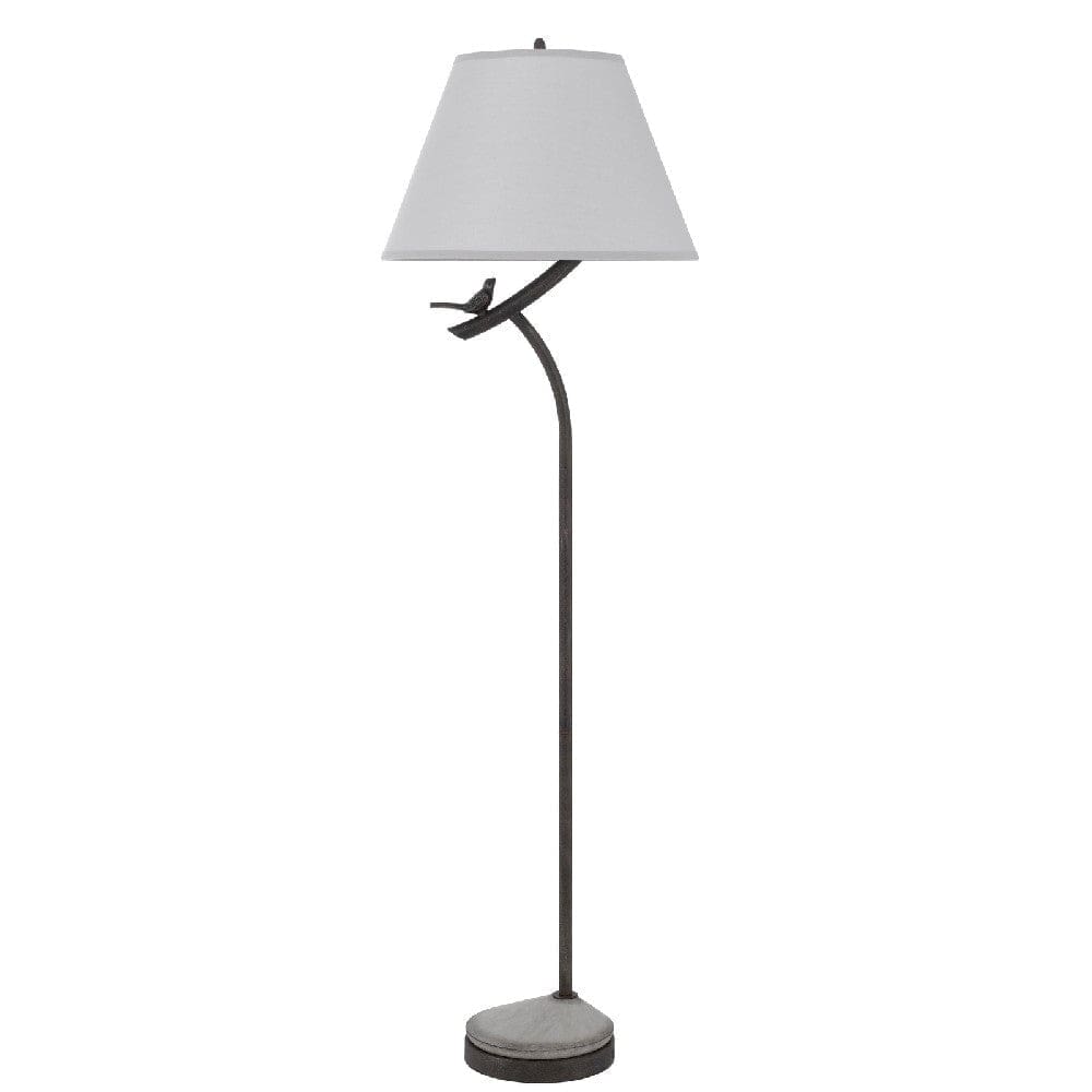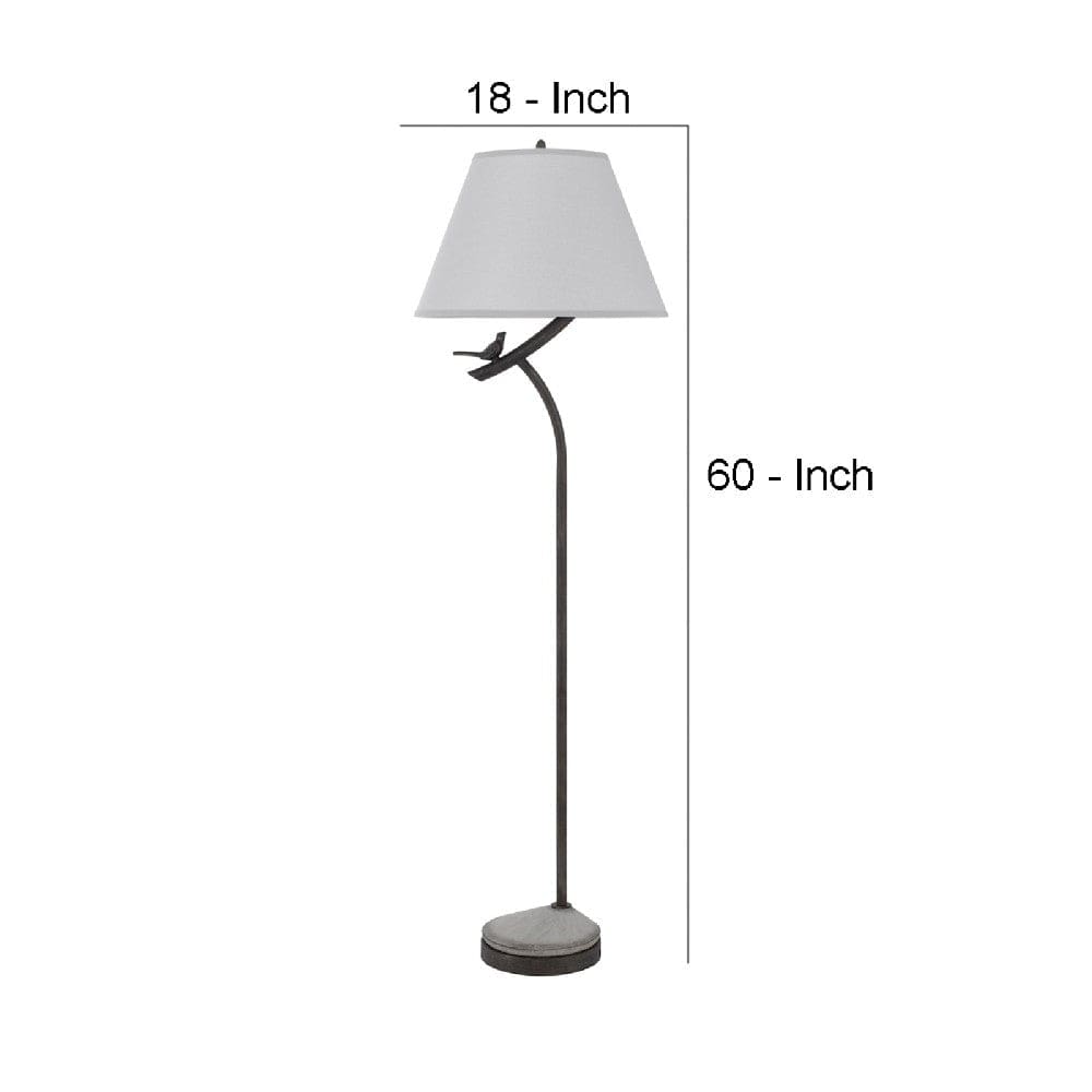 This nature-inspired metal floor lamp is here to fill your home with a tranquil, playful aesthetic. The hardback tapered linen fabric shade rests atop a sleek and elegant metal base. The bird perched on the base is both eye catching and beautifully crafted. A 3 way dimmer allows you to control the light's brightness as you please.