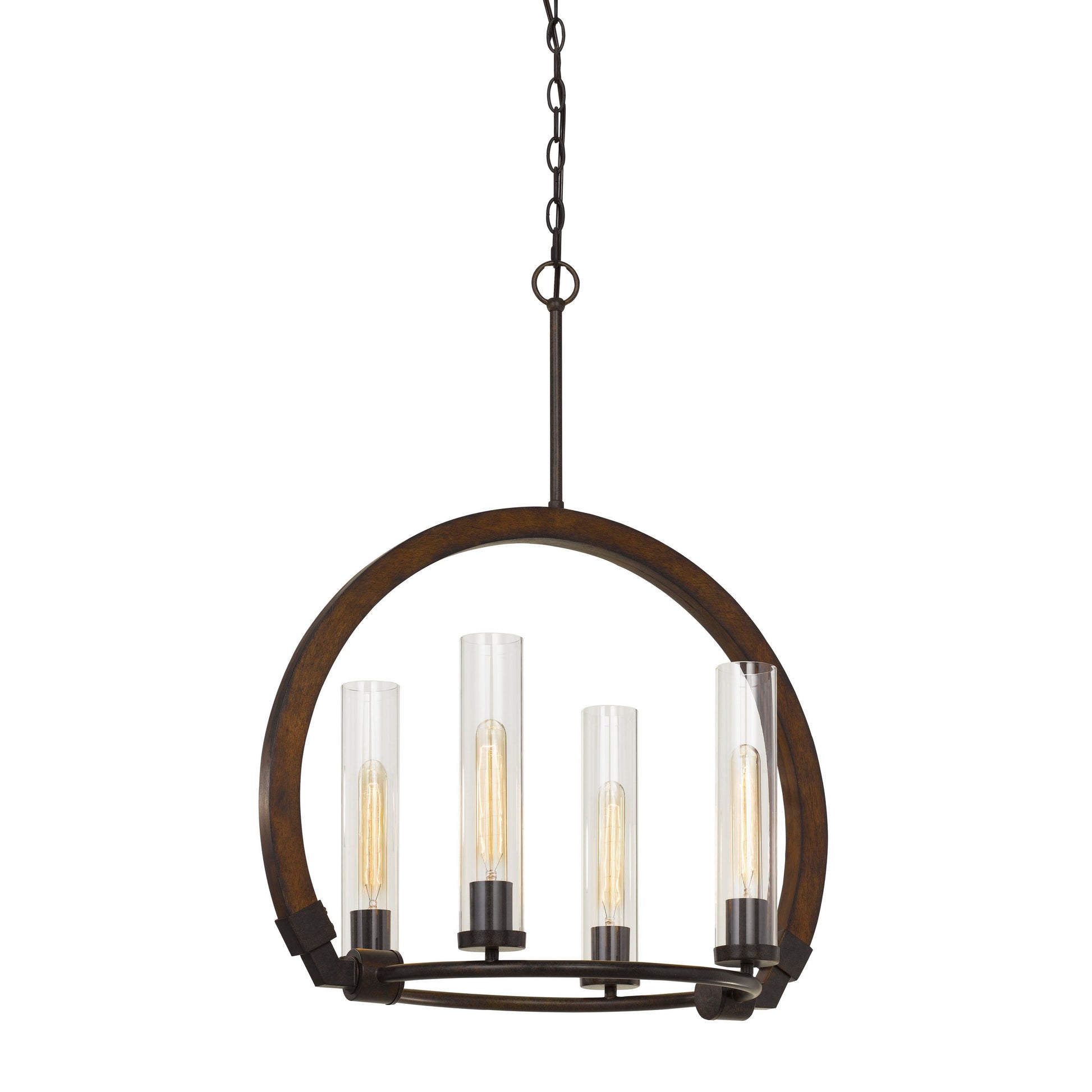 Emblaze your home decor by bringing in this contemporary style Chandelier which comes with 4 light fixtures to ensure quality lighting. Constructed from solid wood and metal frame with glass shades, it is accented with brown and bronze finish.