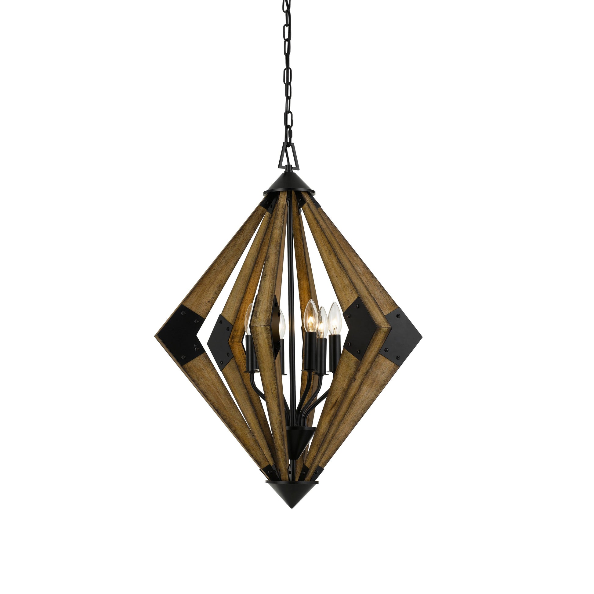 60 X 6 Watt Geometric Wood And Metal Chandelier Brown And Black