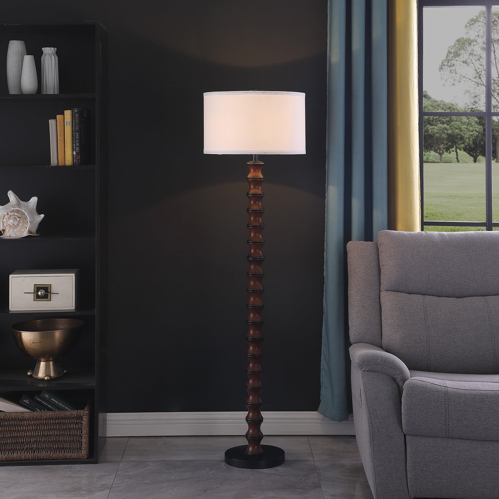 Boost the brightness in your space with this Coastal Littoral Wood Inspired Resin 61"H floor lamp. Crafted from resin in a brown wood finish, this piece features a round base, a slender body, and contemporary shaped top for a modern style appeal. A crisp white drum-shaped shade rounds out this modern design, diffusing light from a compatible maximum 100 W bulb (not included) throughout your space. Bring extra light to a far corner in your living room with this weathered wood grain inspired floor lamp. Compatible with LED, CFL-compatible, and incandescent bulb, this floor lamp offers versatility in illumination. Wade into the light with this sturdy resin body/metal base floor lamp. Made of resin for durability, this floor lamp fits perfectly into a dark corner or reading nook, while its distressed finish has a vintage feel.