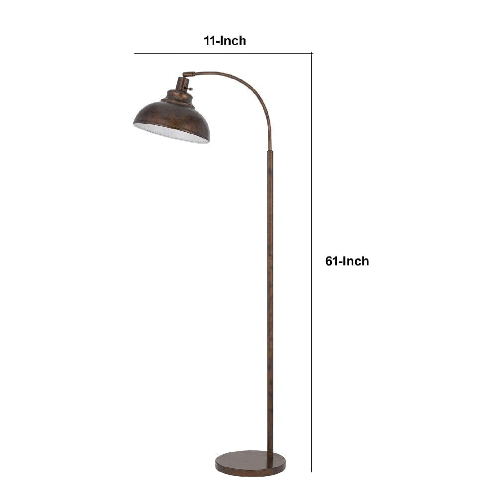Upgrade your workspace or home with this functional adjustable copper tone metal floor Lamp. It has a dome shade that requires a 60Watt bulb for ample lighting with an E26 base that provides warm ambient lighting to your area. The adjustable feature offers convenient movement where needed, with ideal mood lighting and a simple style to balance the aesthetic of your decor.