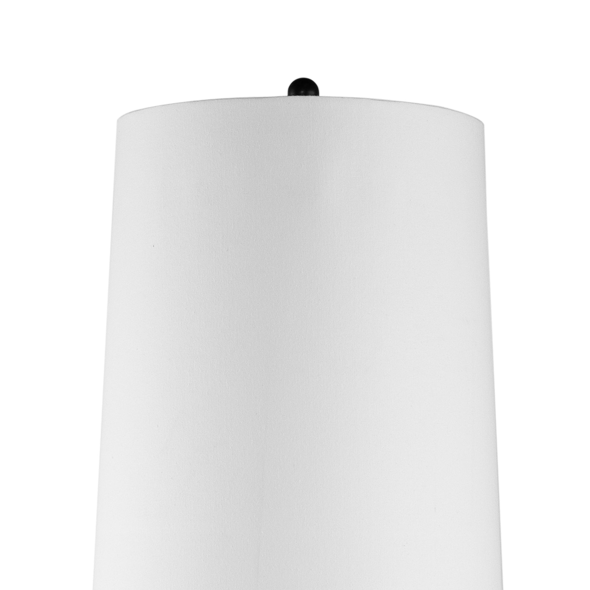 Infuse a bold cotemporary glamour into your living room, den, foyer, or home office, with this original modern floor lamp. It features a round drum shade that is wrapped in a simple, clean white fabric. Crafted from a lightweight yet sturdy iron frame in a striking black tone finish, the disc accent and gently tapered base impart a unique character to this exquisitely designed piece.