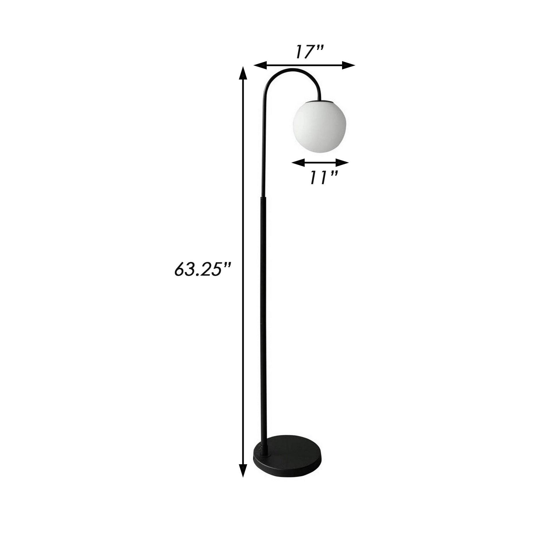 63 Inch Modern Metal Floor Lamp Frosted Glass Globe Shade Black White