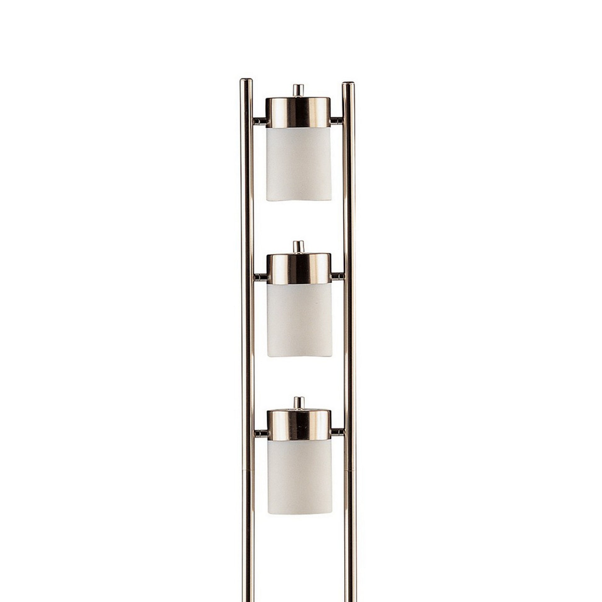 Create a bold, contemporary statement amid any room in your home with our sleek H framed floor lamp. Its sturdy and well balanced brushed silver metal construction is both captivating and sturdy while its three swivel lights and horizontal, frosted glass shades create a sense of warm illumination. Its sleek silhouette is glamorous and tastefully chic amid any decor style.