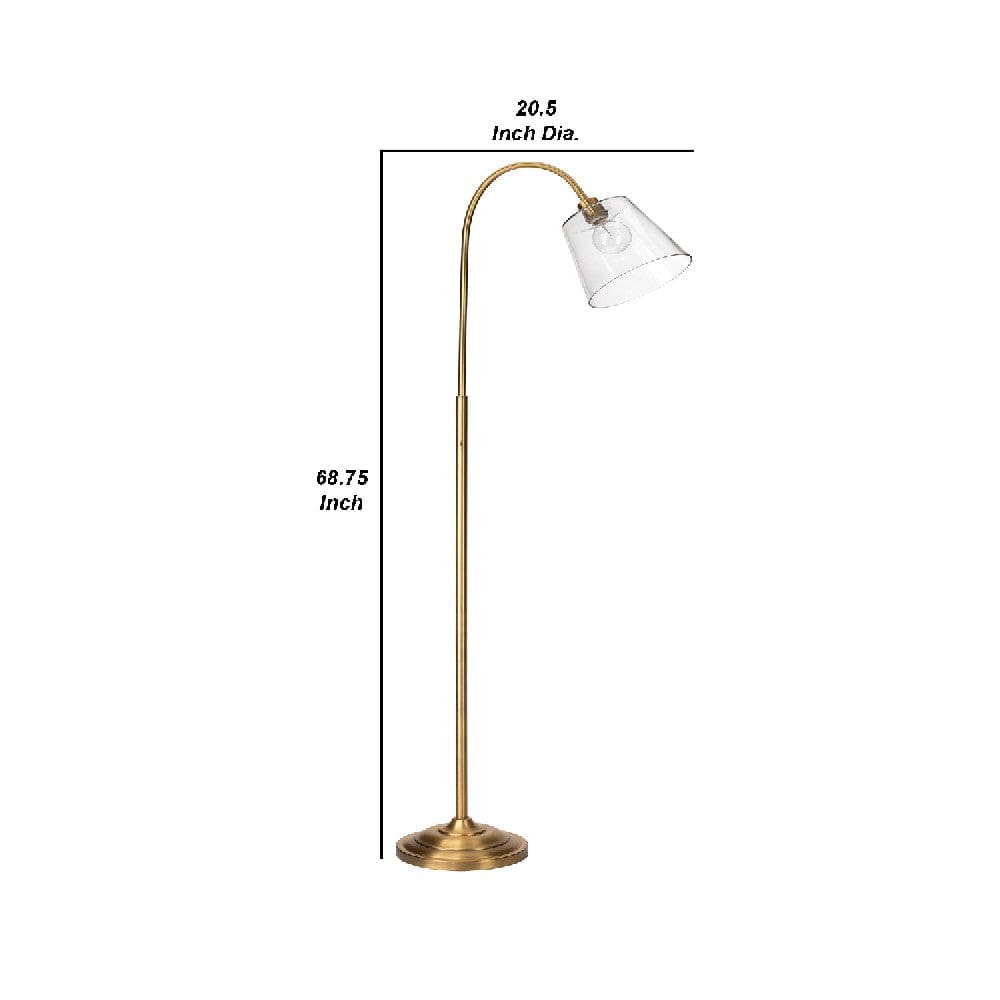 69 Inch Metal Floor Lamp With Clear Cone Glass Shade Brass