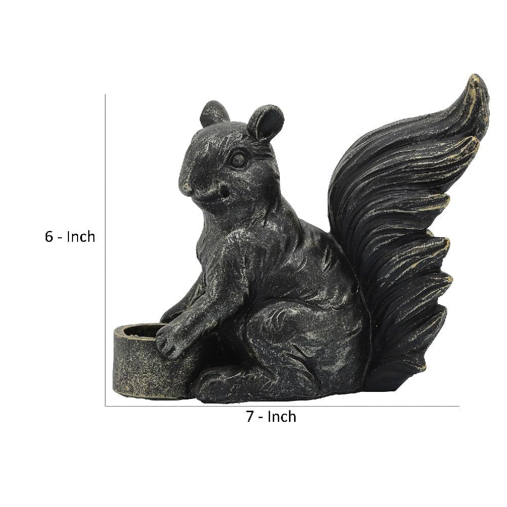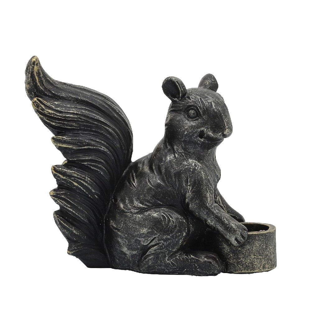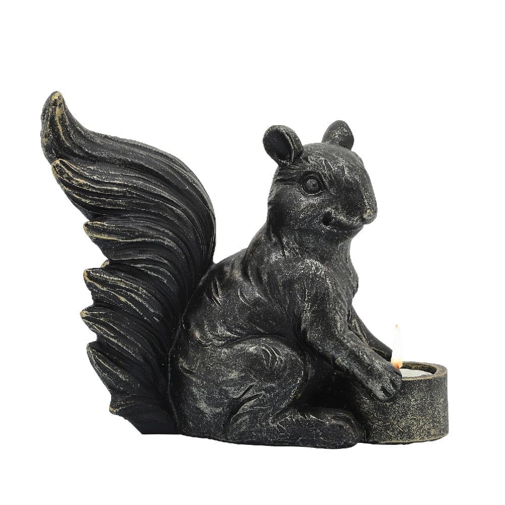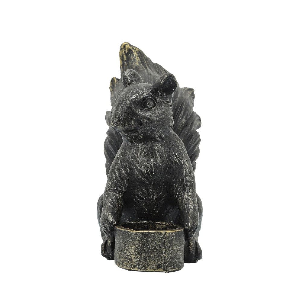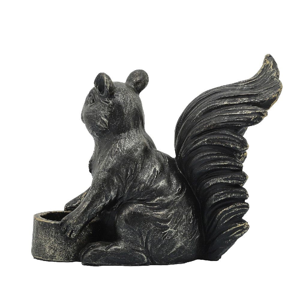 7 Inch Resin Candle Holder With Squirrel Design Black