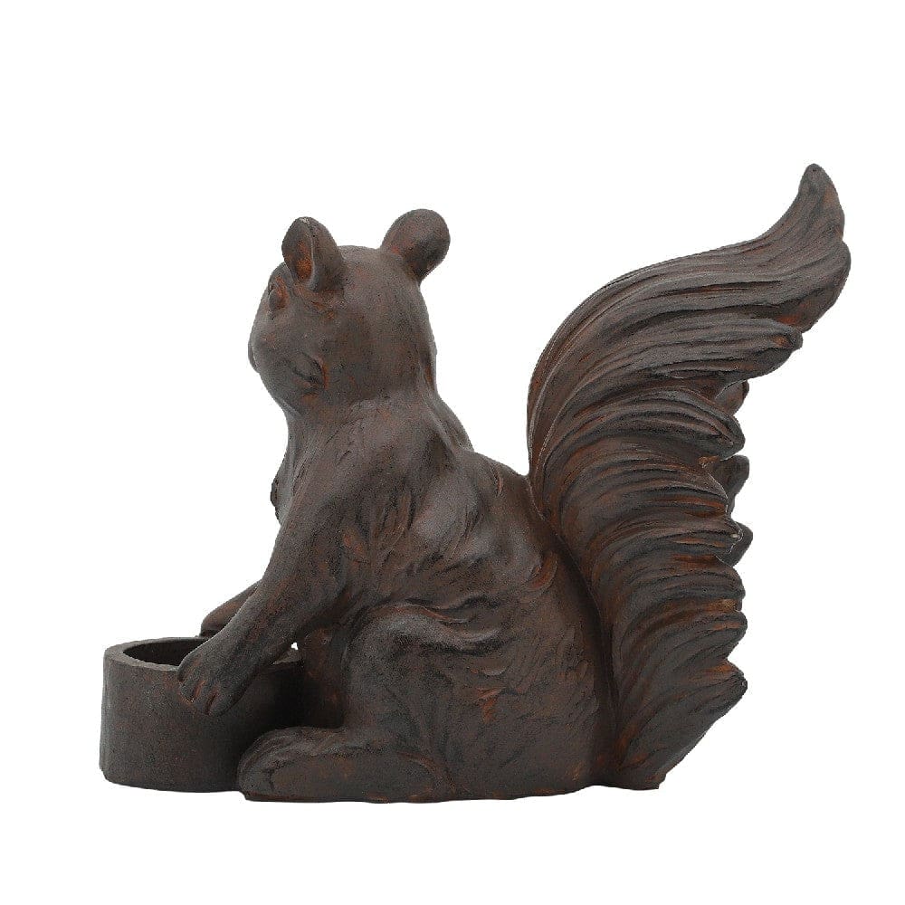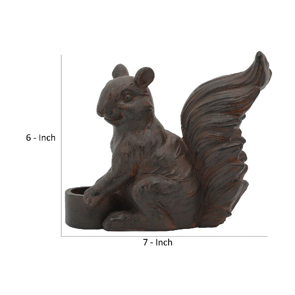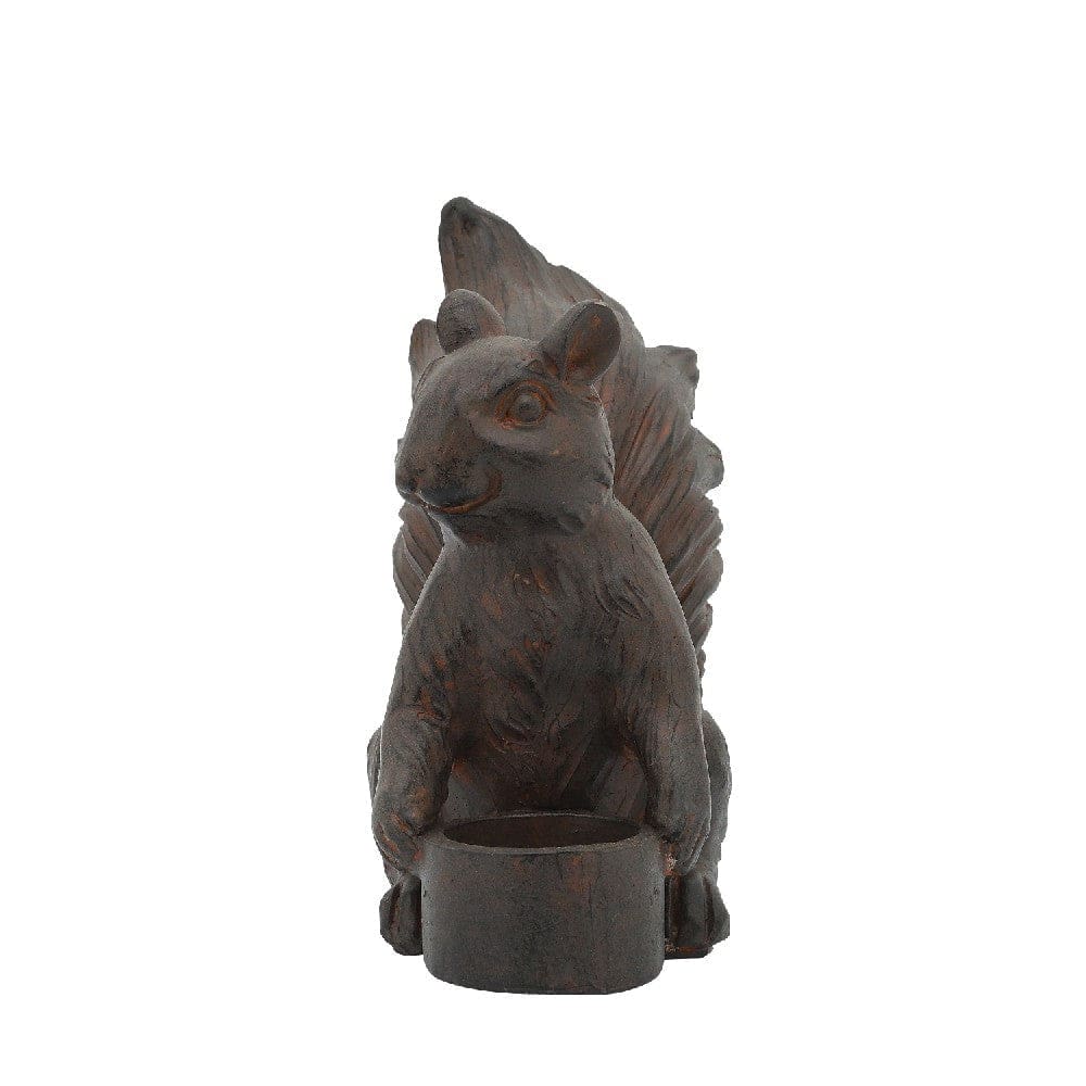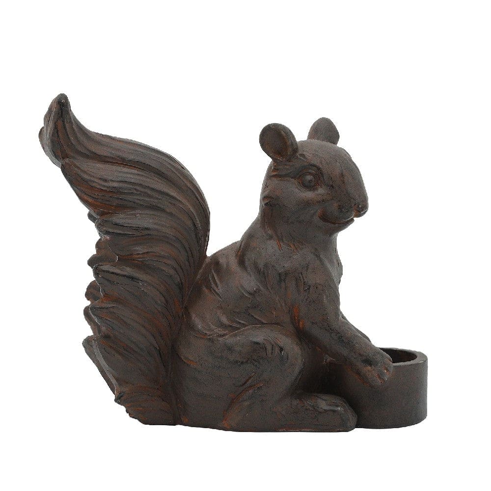 7 Inch Resin Candle Holder With Squirrel Design Brown