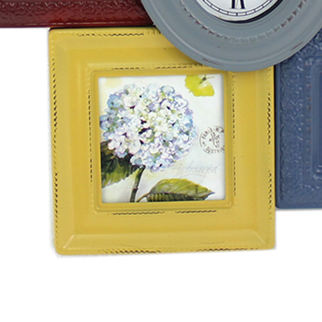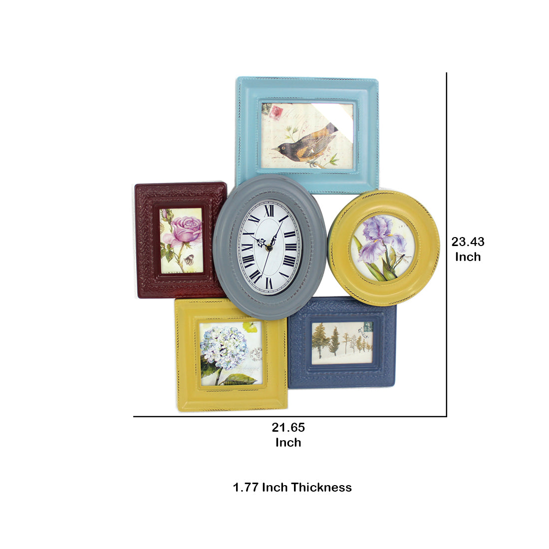 7 Piece Wall Decor With Oval Shape Clock At Centre Multicolor