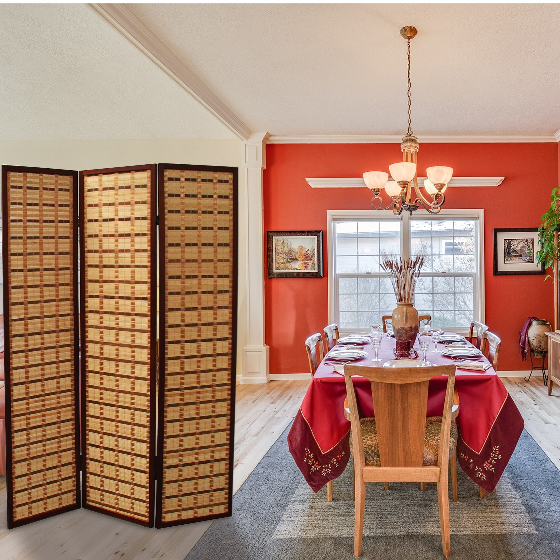 70.25" In Two Tone Bamboo 3-panel Walnut Room Divider