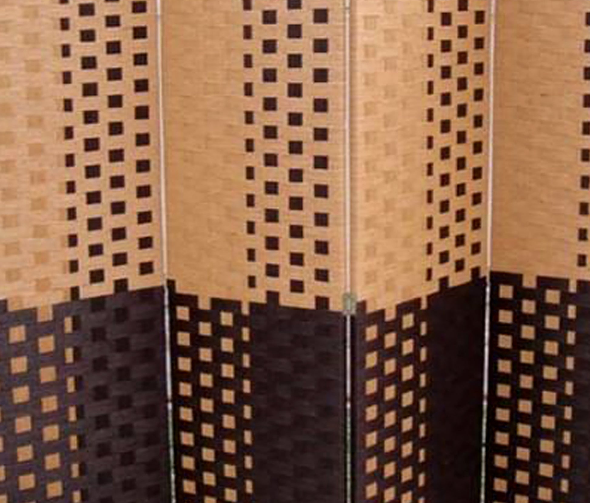 This Modern style Brown/Espresso finish room divider enables for individuals to keep a safe zone and to keep privacy from visitor's view. Visually pleasing accent for any room, It will subdivide your space to create a separation from living space to dining space. The Screen can also works as a backdrop for your wall decor. Item is Handcrafted, so screen is skillfully weave by hand process rather than a machine. You will appreciate the flexibility to place, store, or move this 4 Panel room divider with ease. Convenience to fold and put away if not in use.