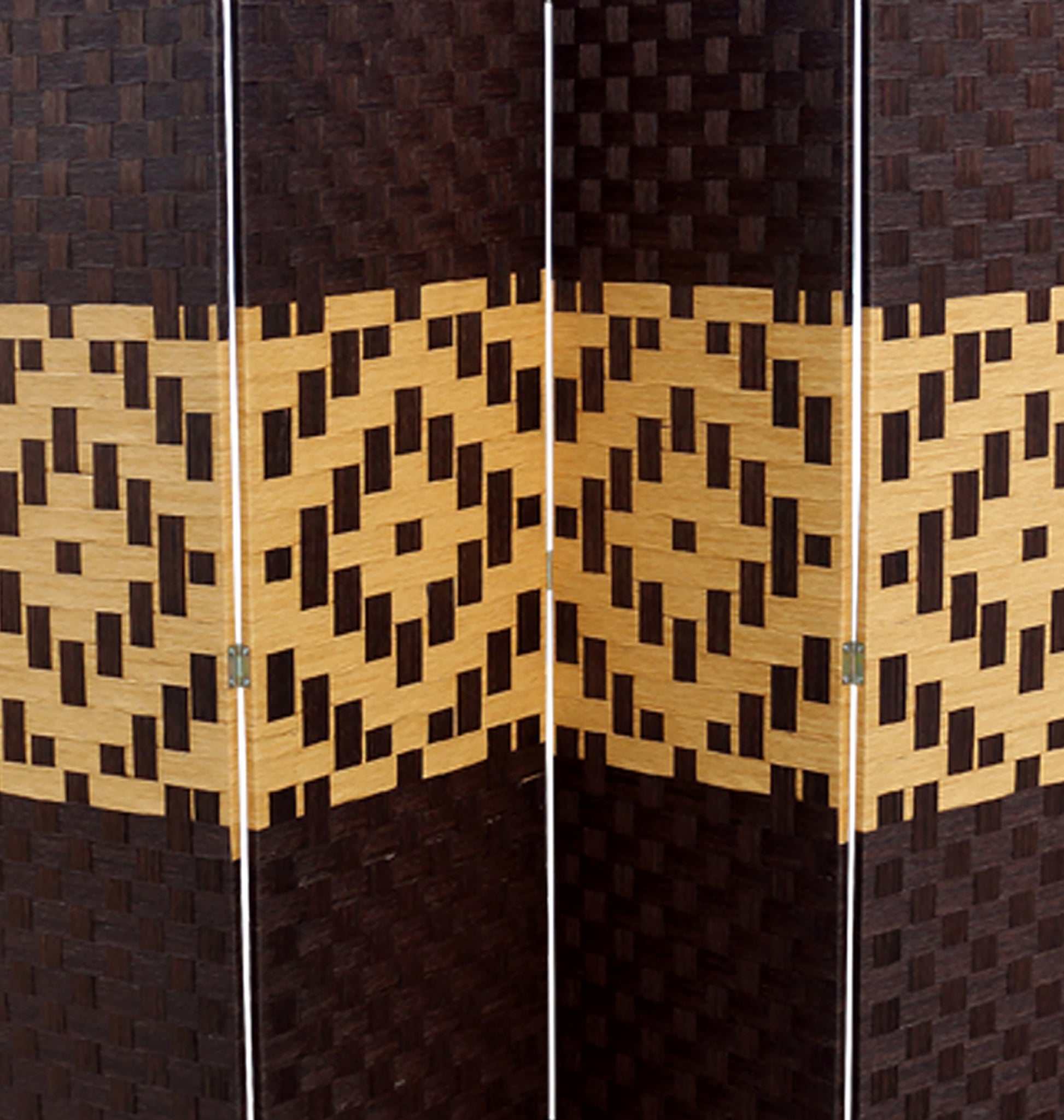 This modern style Espresso/Brown finish room divider enables for individuals to keep a safe zone and to keep privacy from visitor's view. Visually pleasing accent for any room, It will subdivide your space to create a separation from living space to dining space. The Screen can also works as a backdrop for your wall decor. Item is Handcrafted, so screen is skillfully weave by hand process rather than a machine. You will appreciate the flexibility to place, store, or move this 4 Panel room divider with ease. Convenience to fold and put away if not in use.